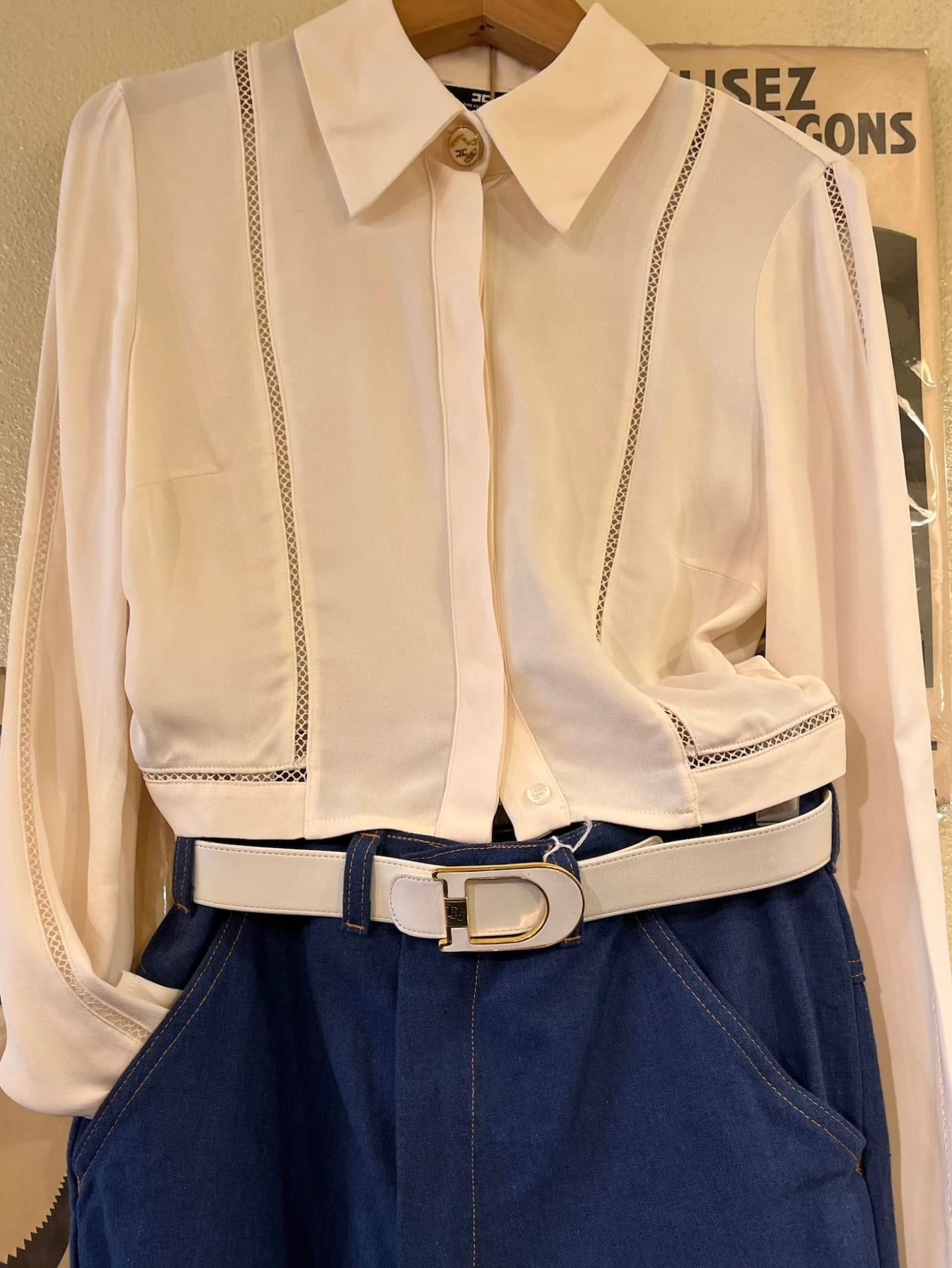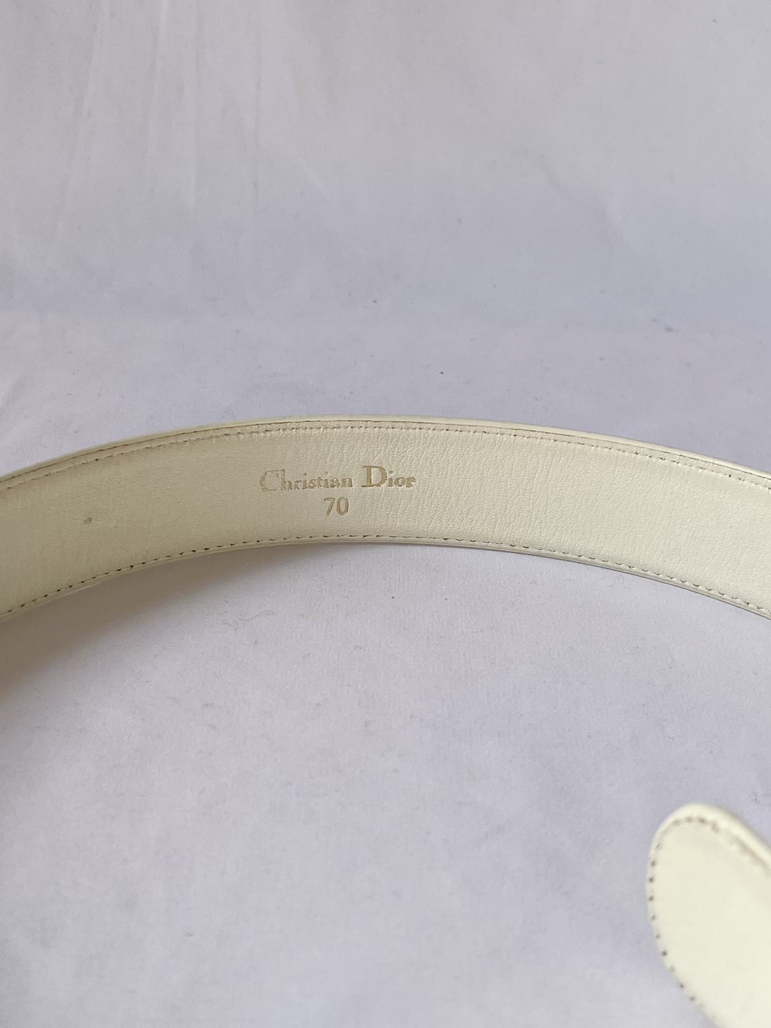 ホワイトのレザーベルトに同色の"D"ロゴバックルが目を惹くDior vintageベルト。