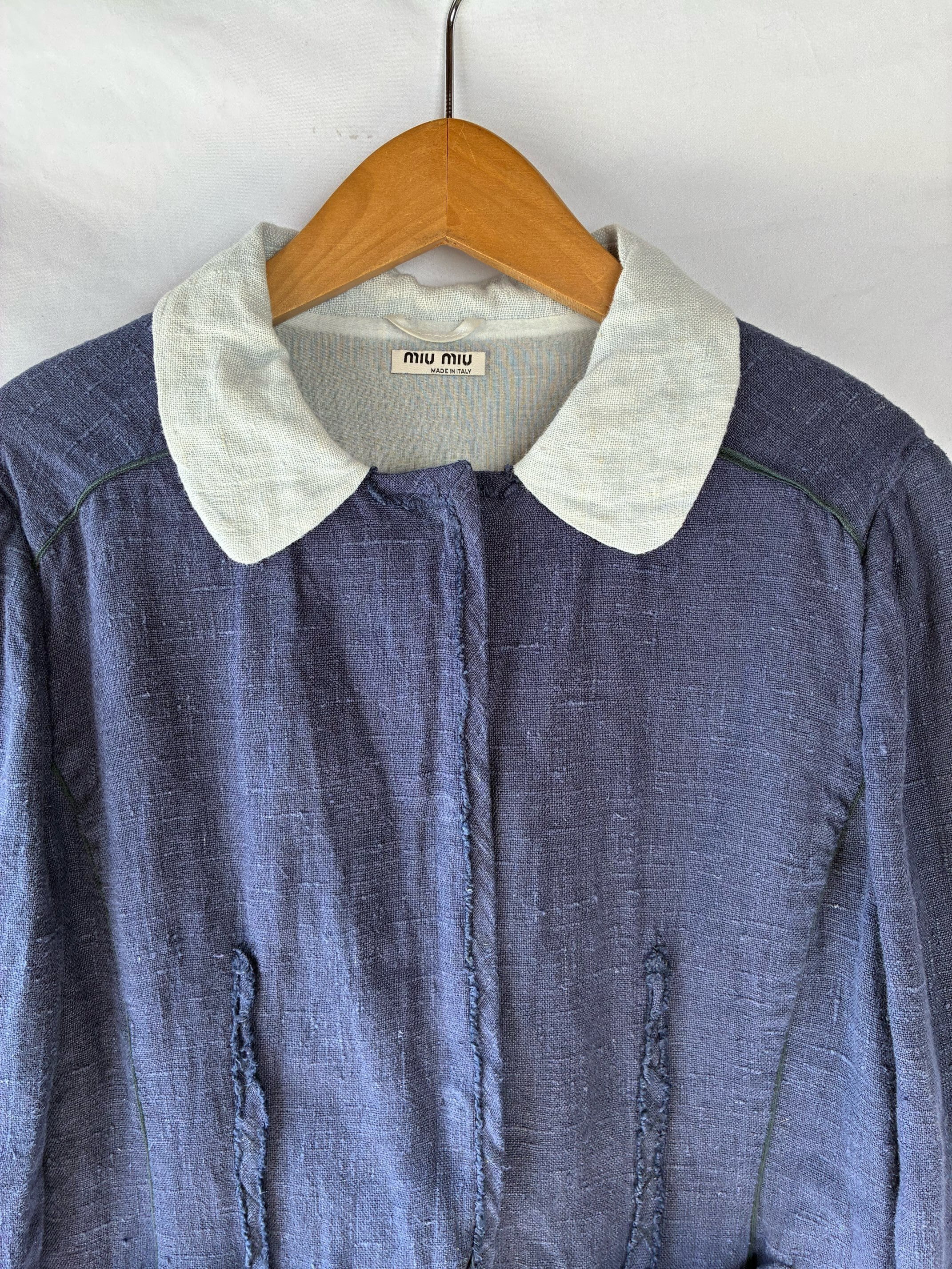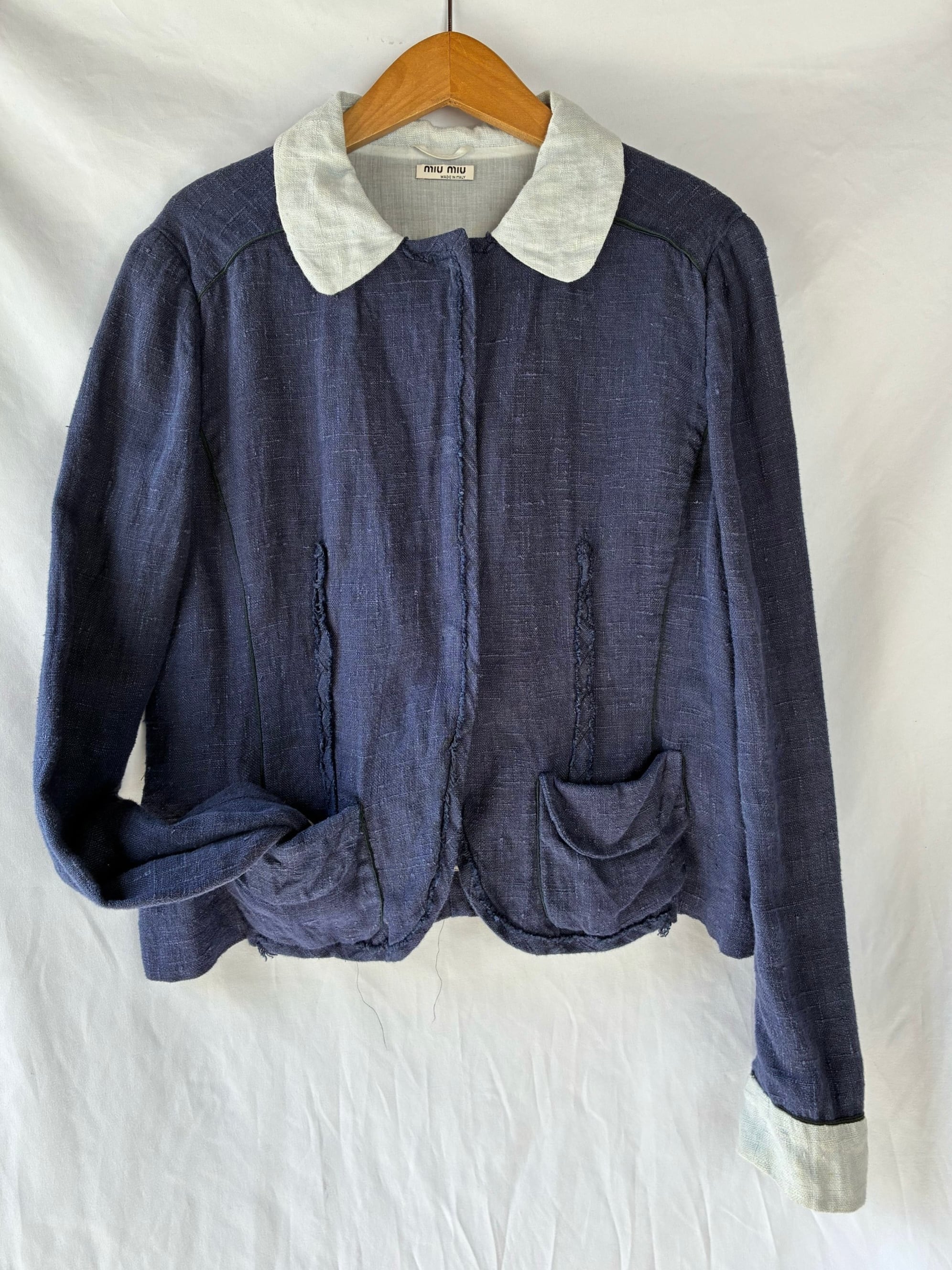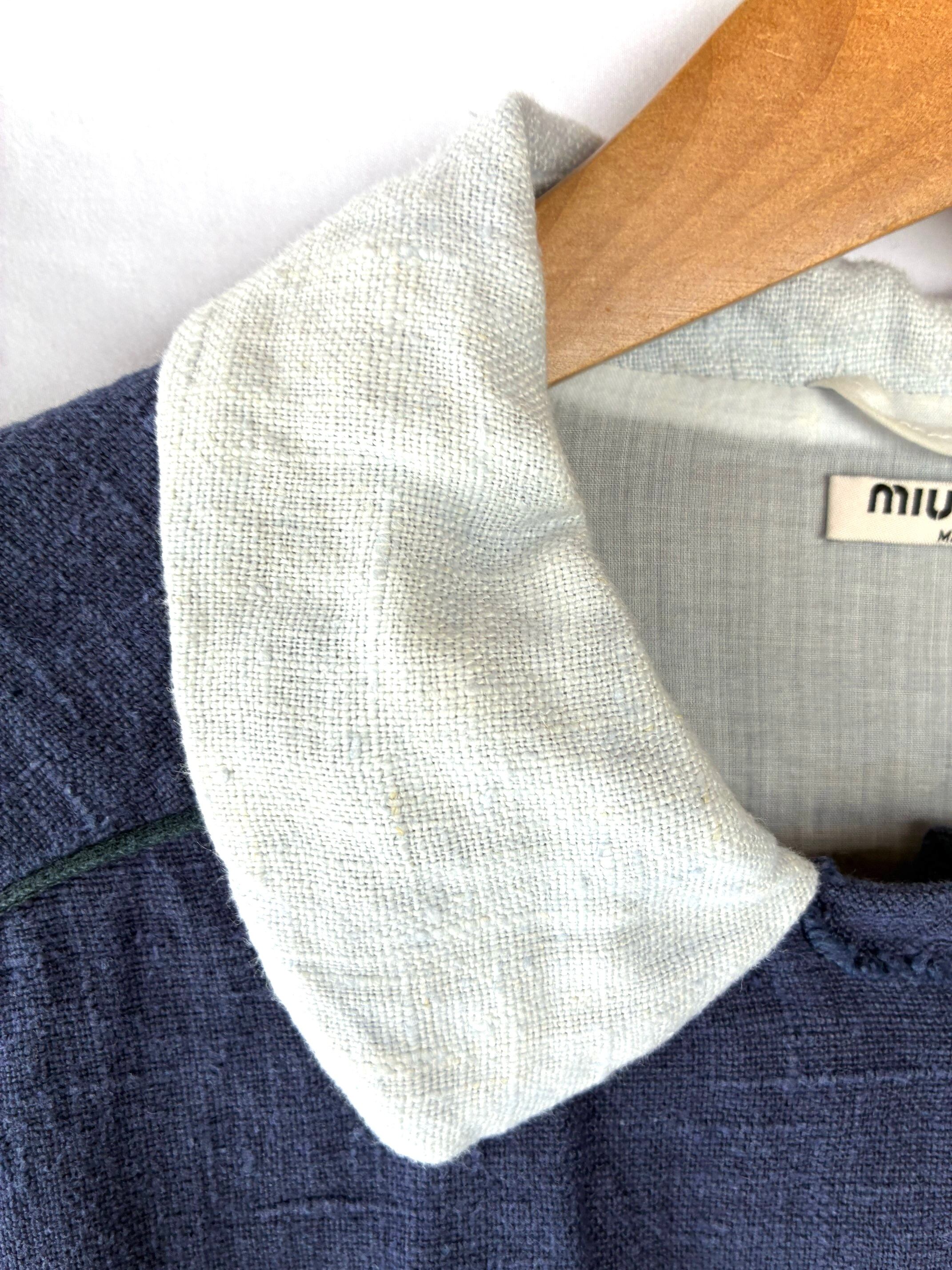 ネイビー×アイスグレーのバイカラーがユニークなmiu miuのジャケット。
