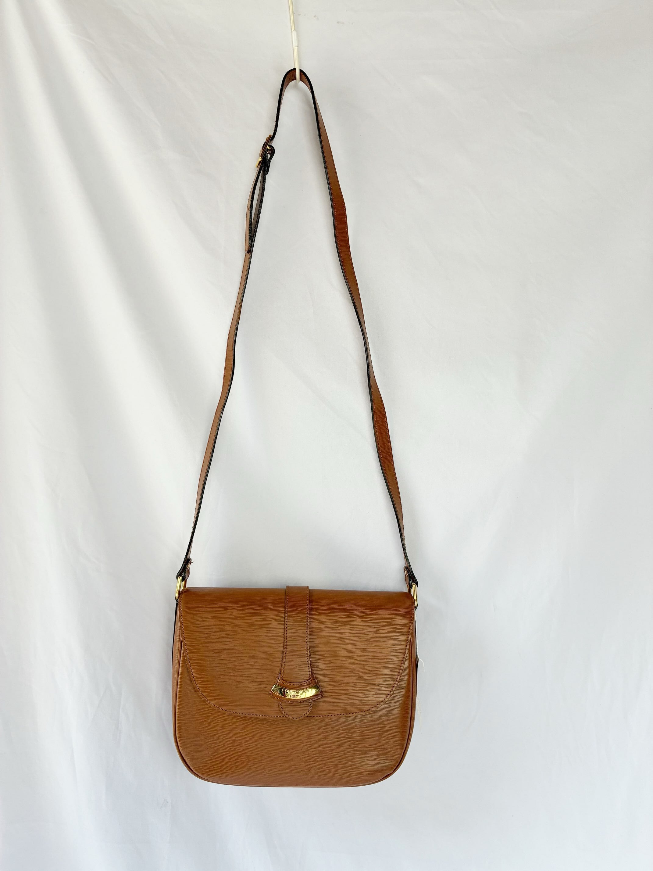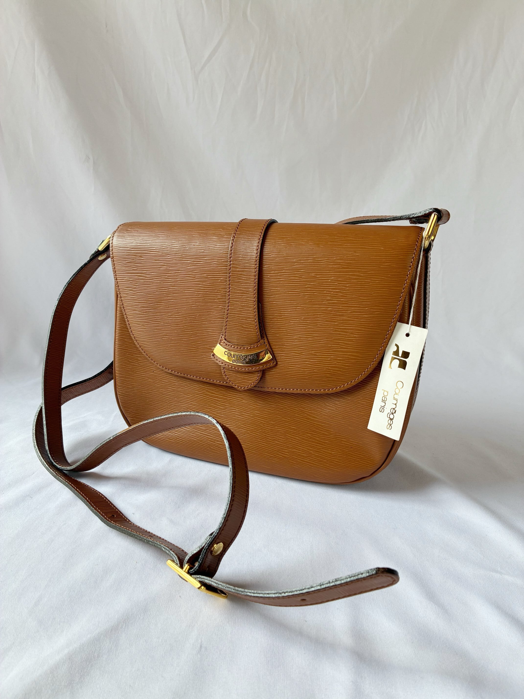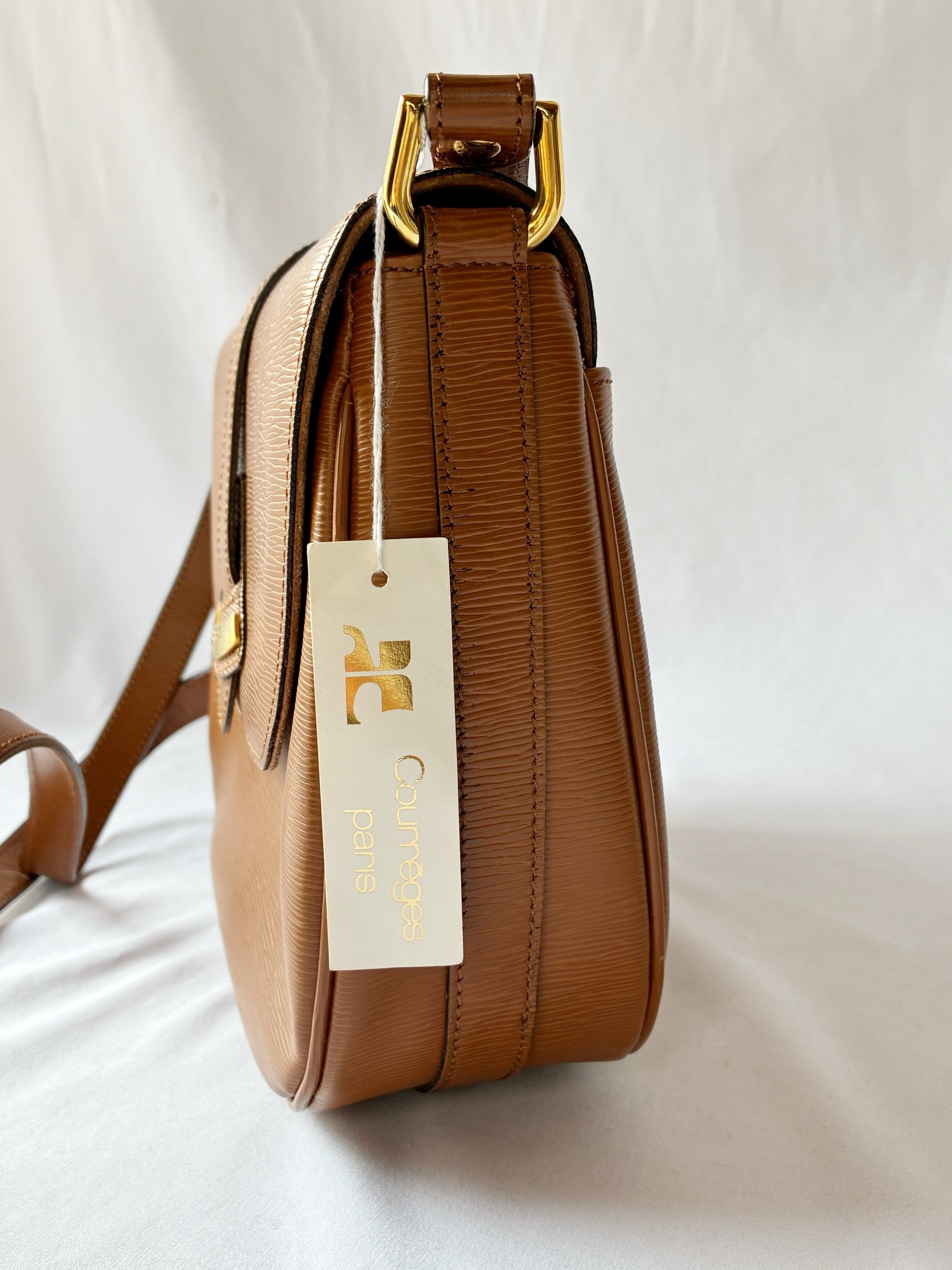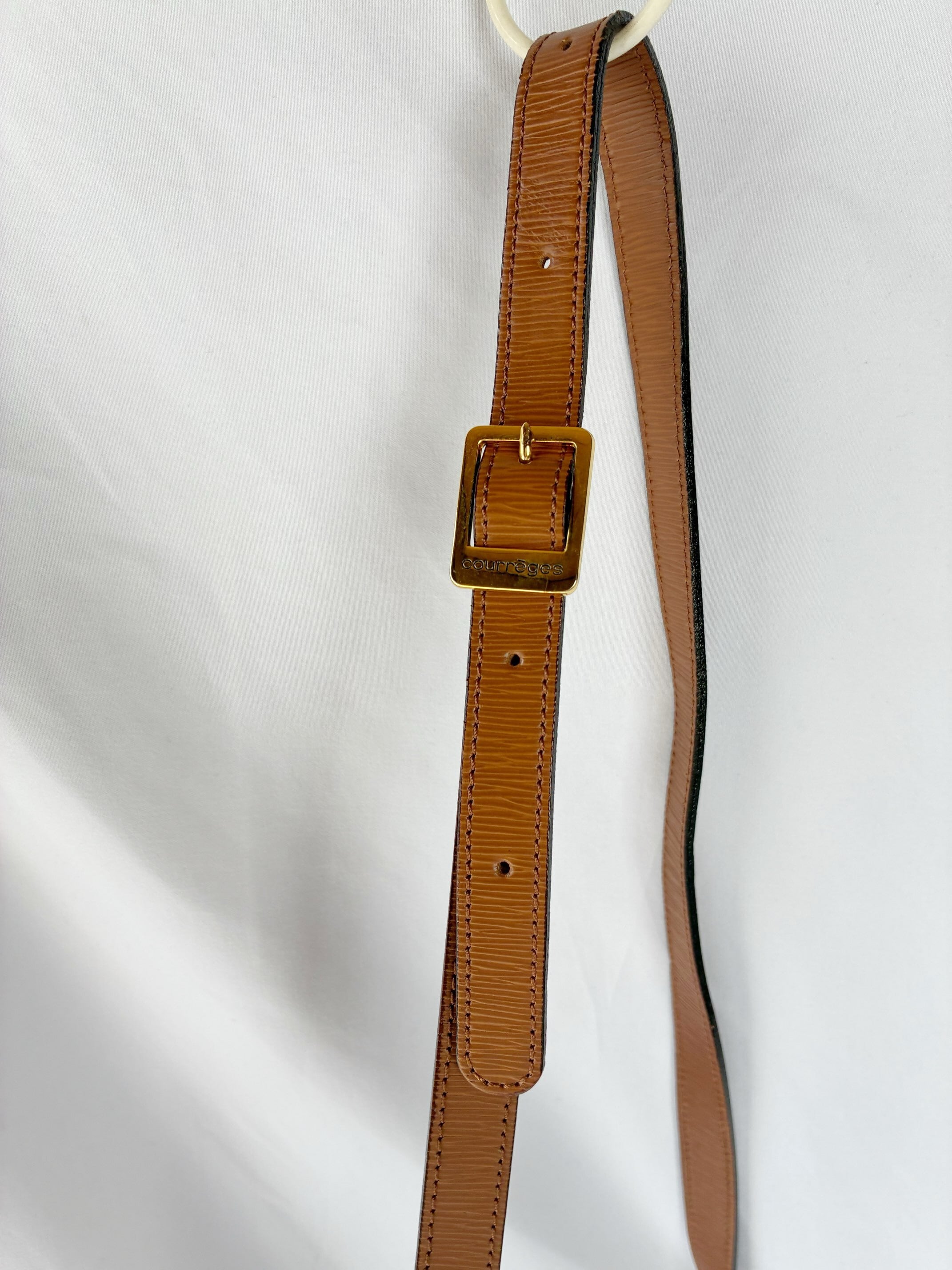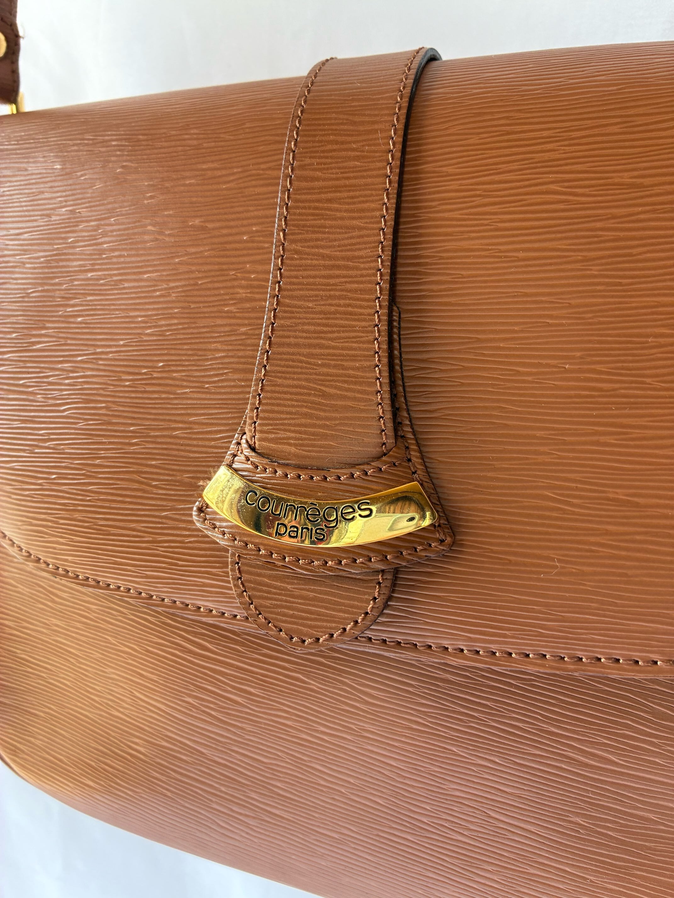 ブラウンレザーにゴールドのメタルロゴが映えるCourreges Vintage ショルダーBag.☆
