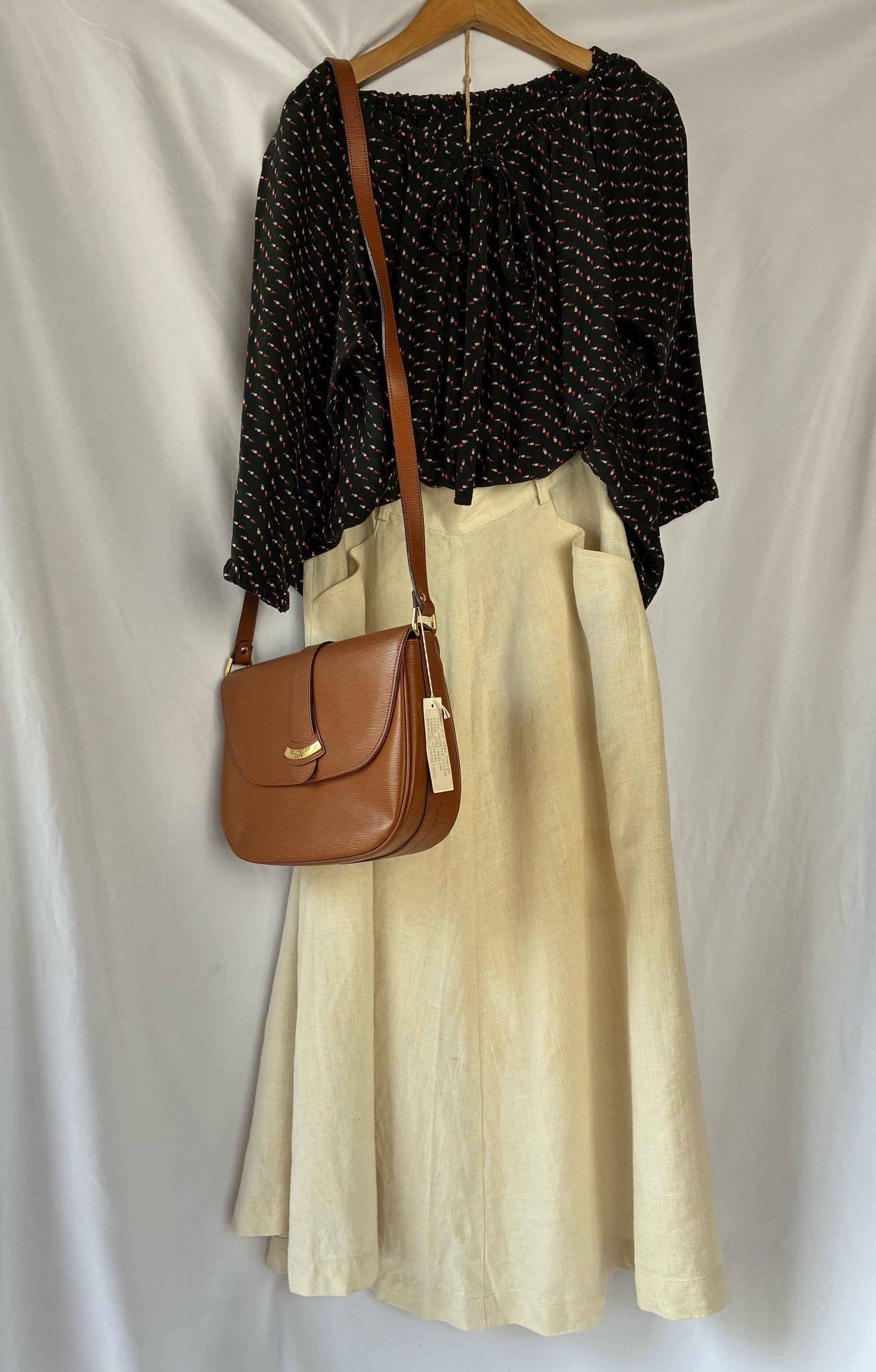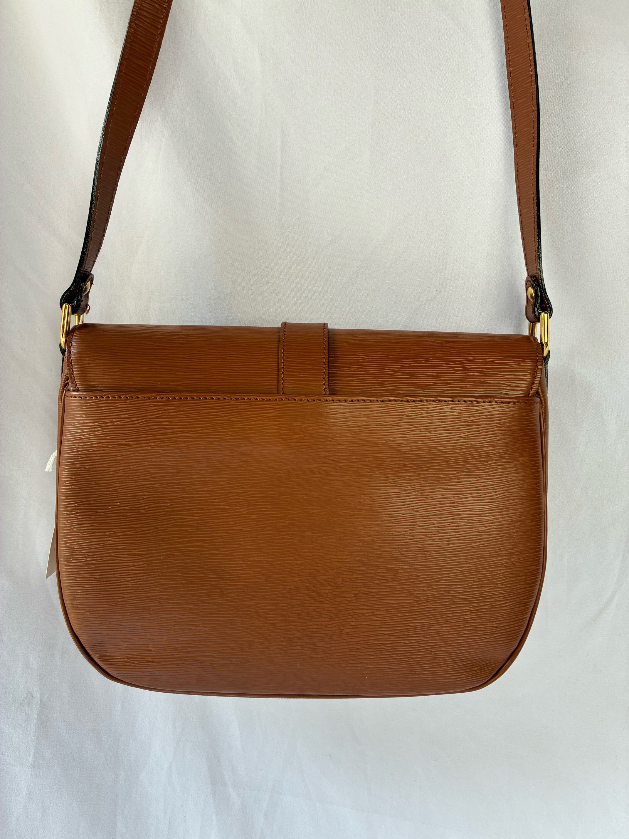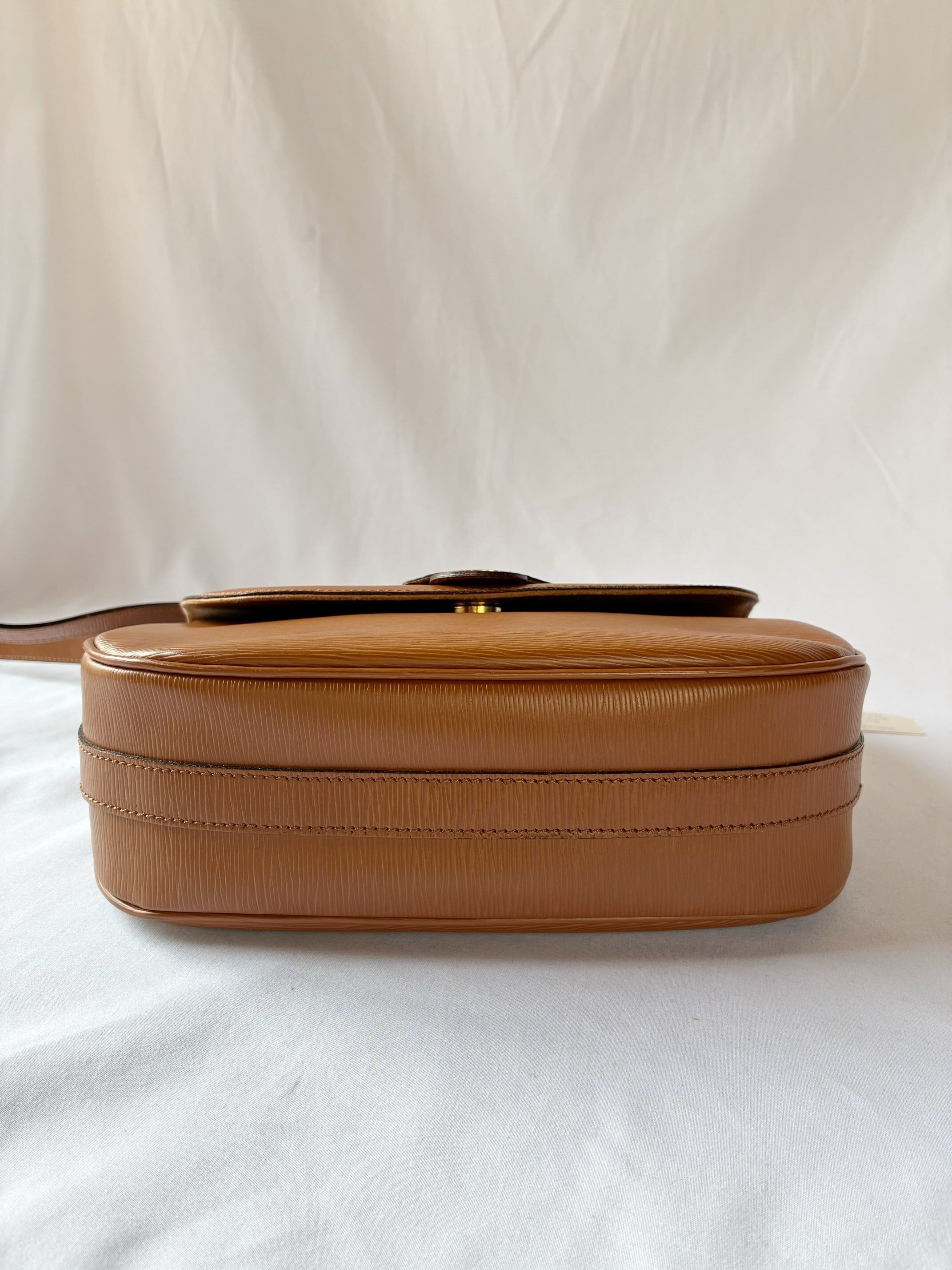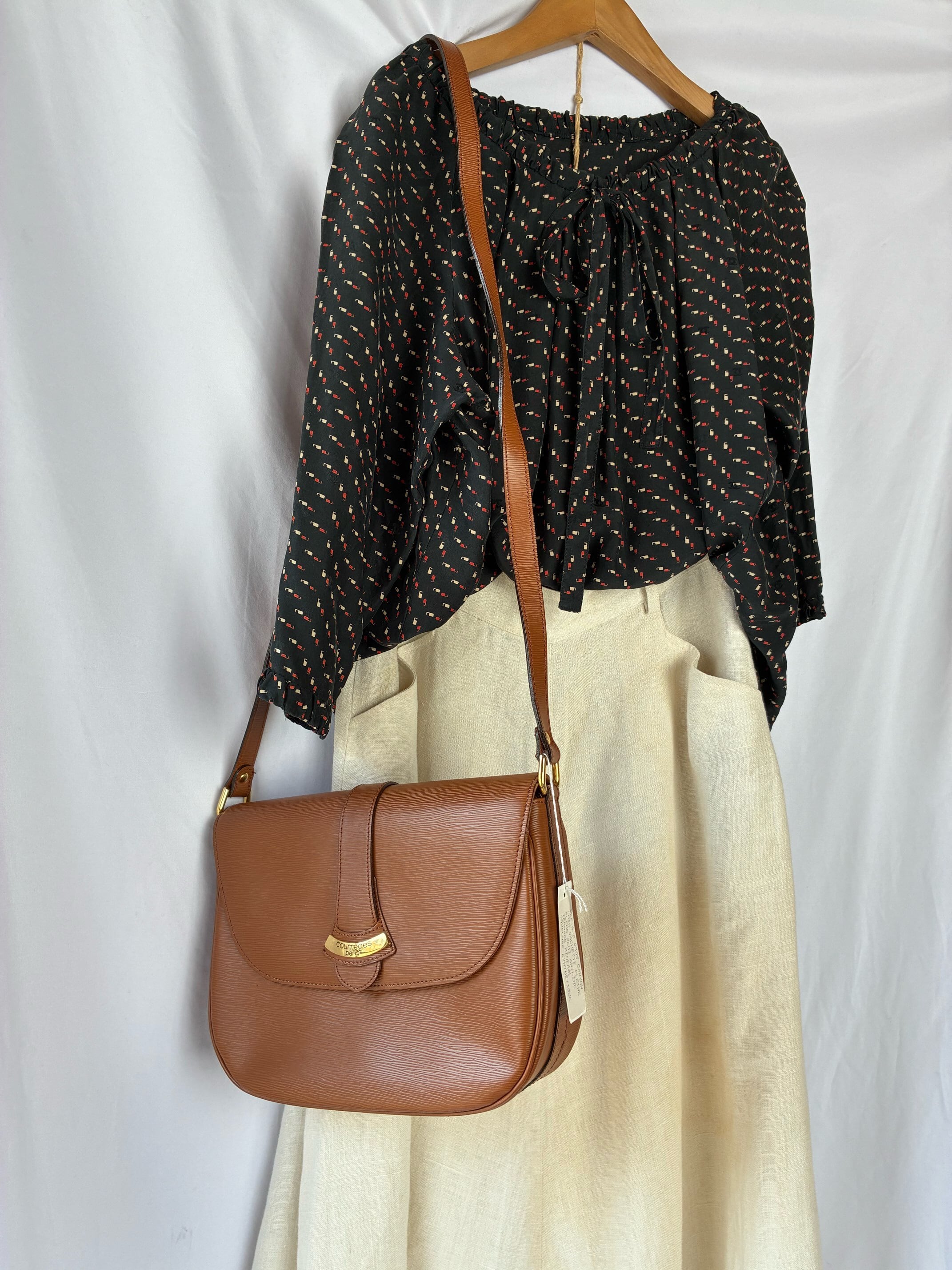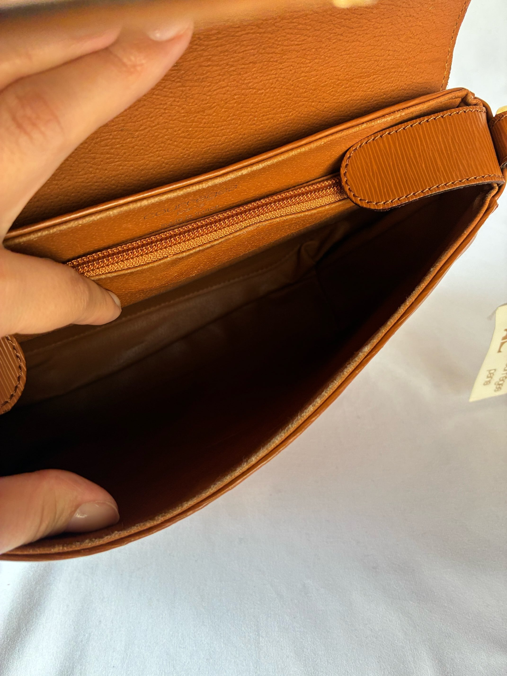 ブラウンレザーにゴールドのメタルロゴが映えるCourreges Vintage ショルダーBag.☆