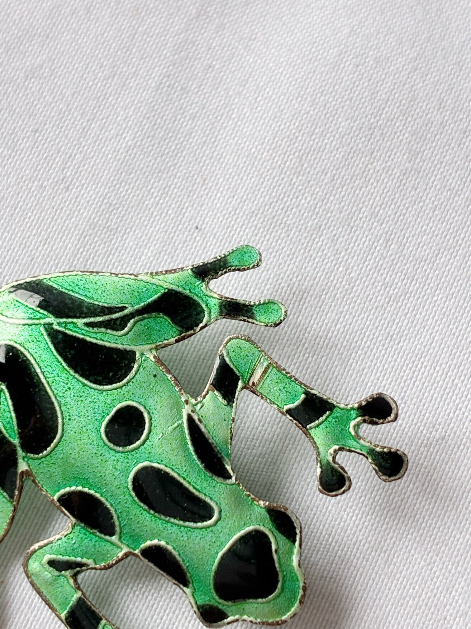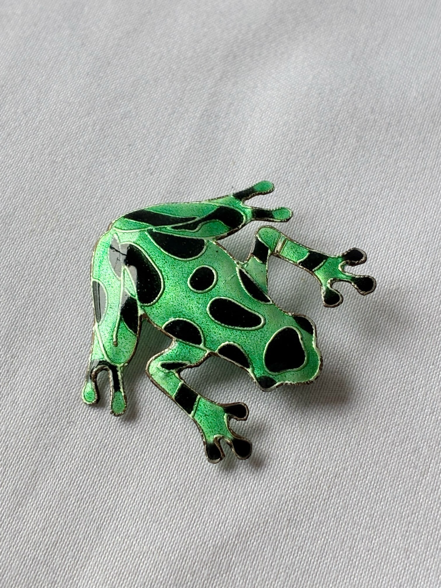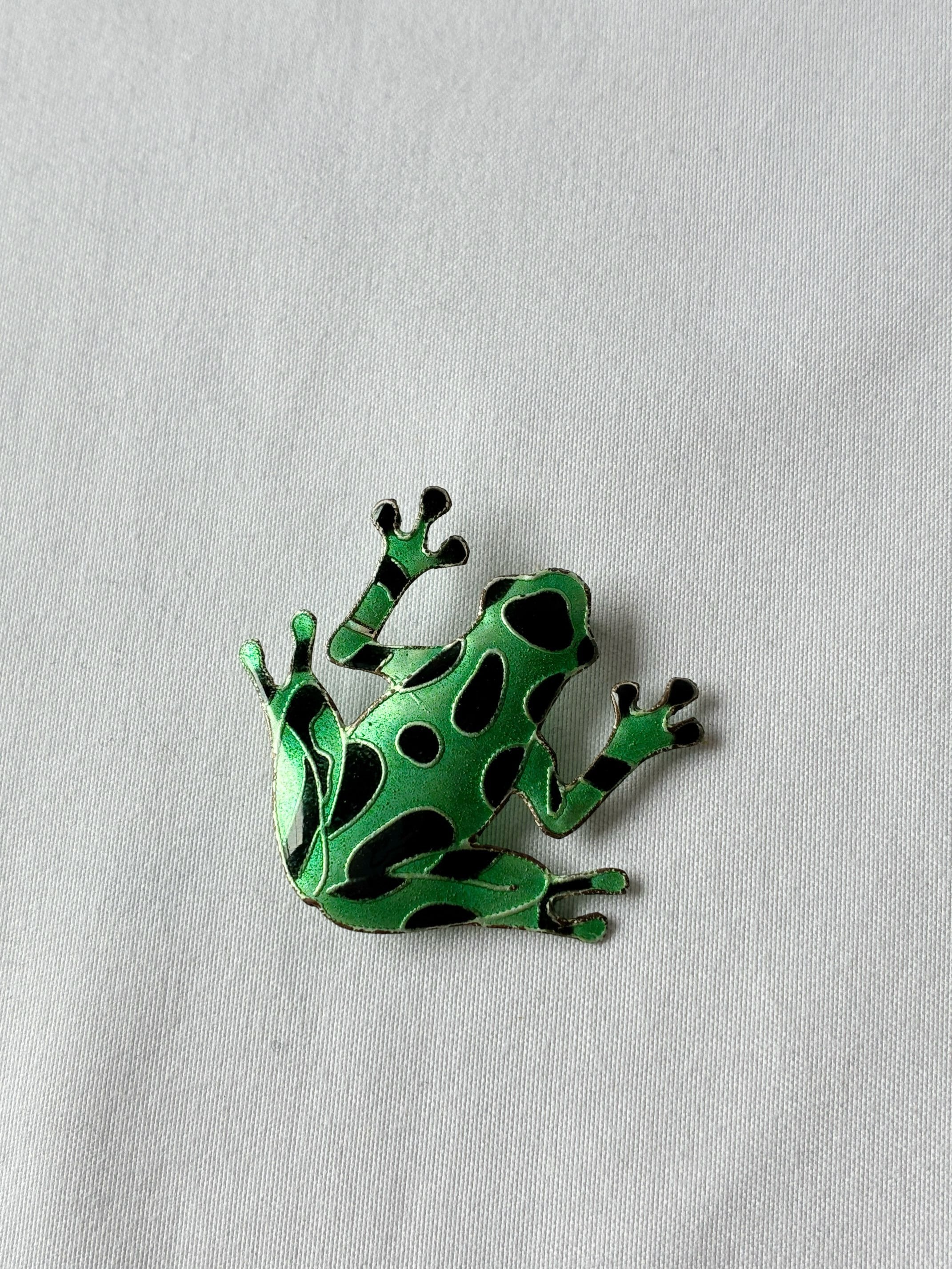 ブラックドットカエルがクールなU.S Vintage ブローチ. 明るいグリーンカラーが目を引くカラーリング. ぷくっとツヤのある質感がリアルで、再現性の高さも魅力的な一品です.
