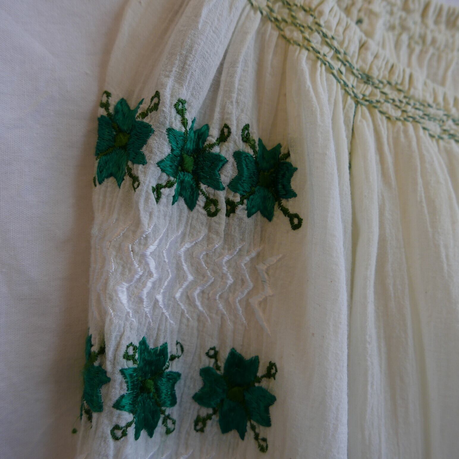 ふわっと柔らかいコットンに綺麗なグリーンの刺繍が目を引きます^^
