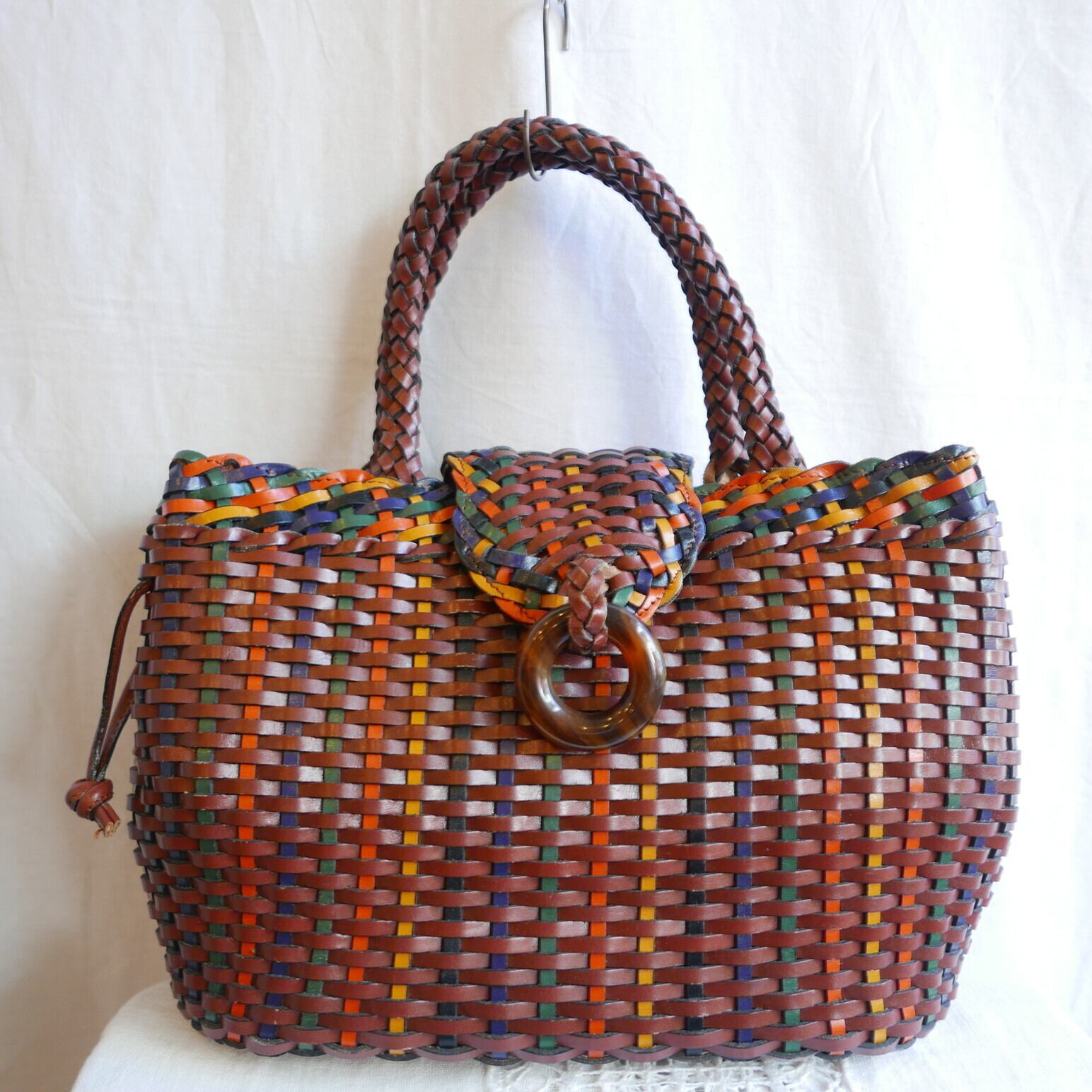 Italy Vintage レザーメッシュ ハンドバッグ!