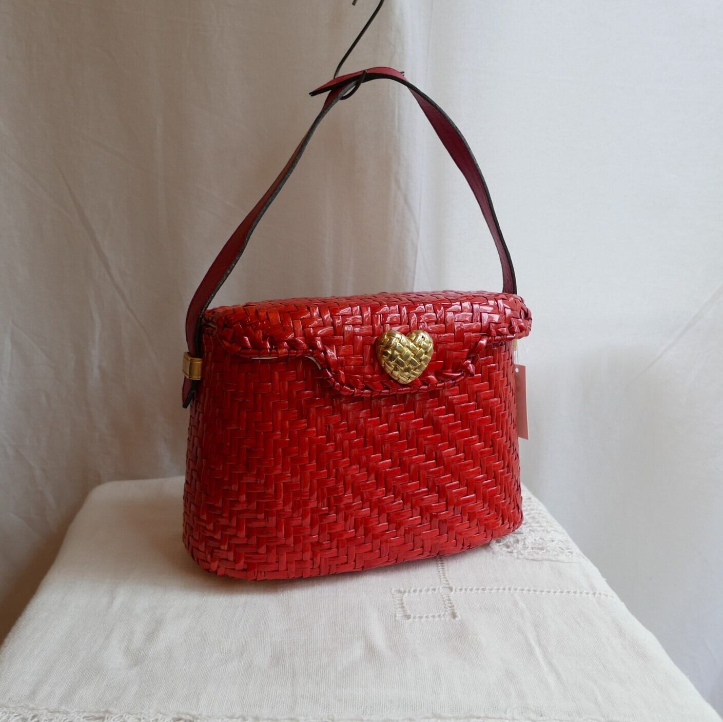 Italy 赤ラタンハンドバッグ!