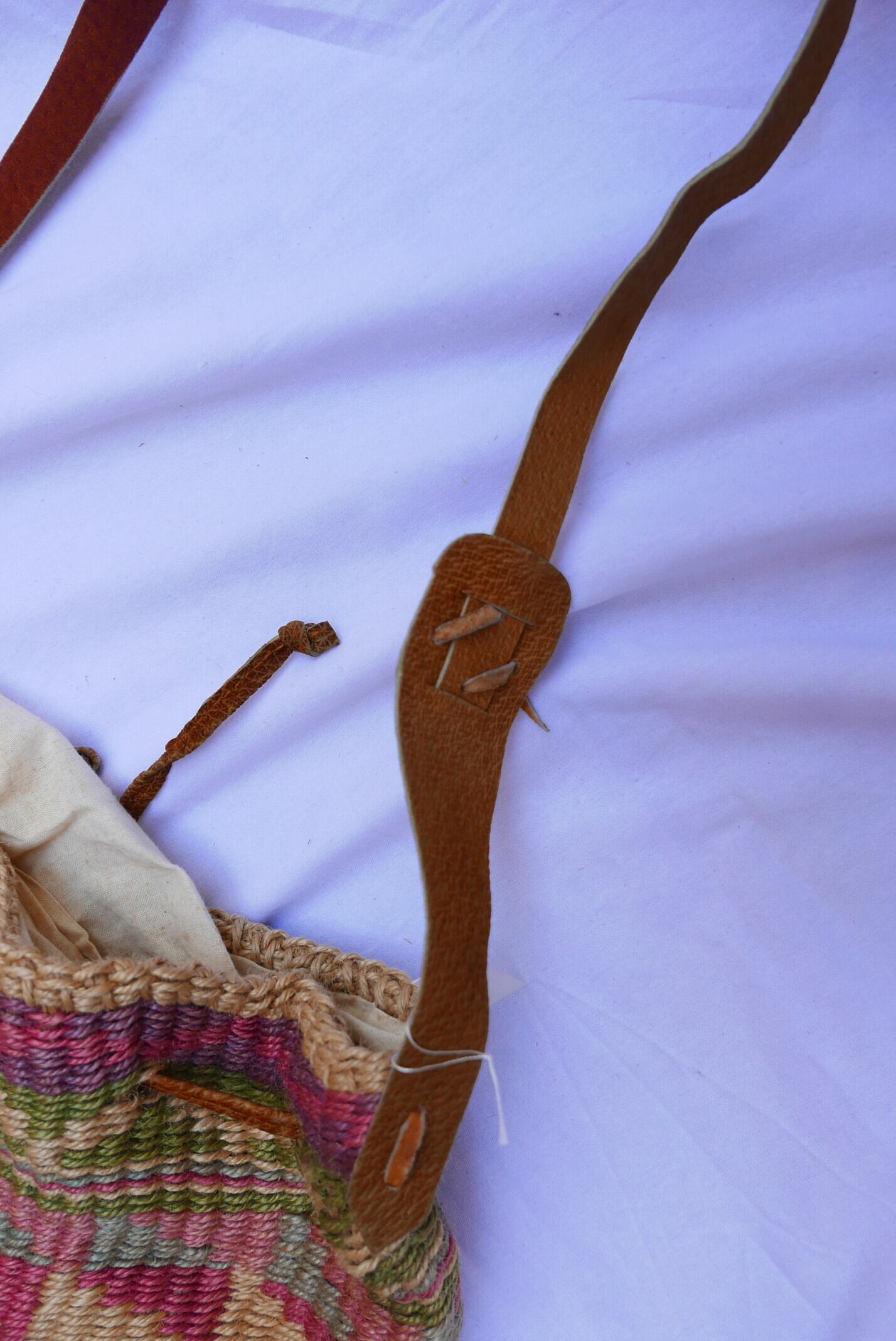 ハンドメイド感のあるストラップに、ネイティブ柄のストロー素材でヒッピー風・・