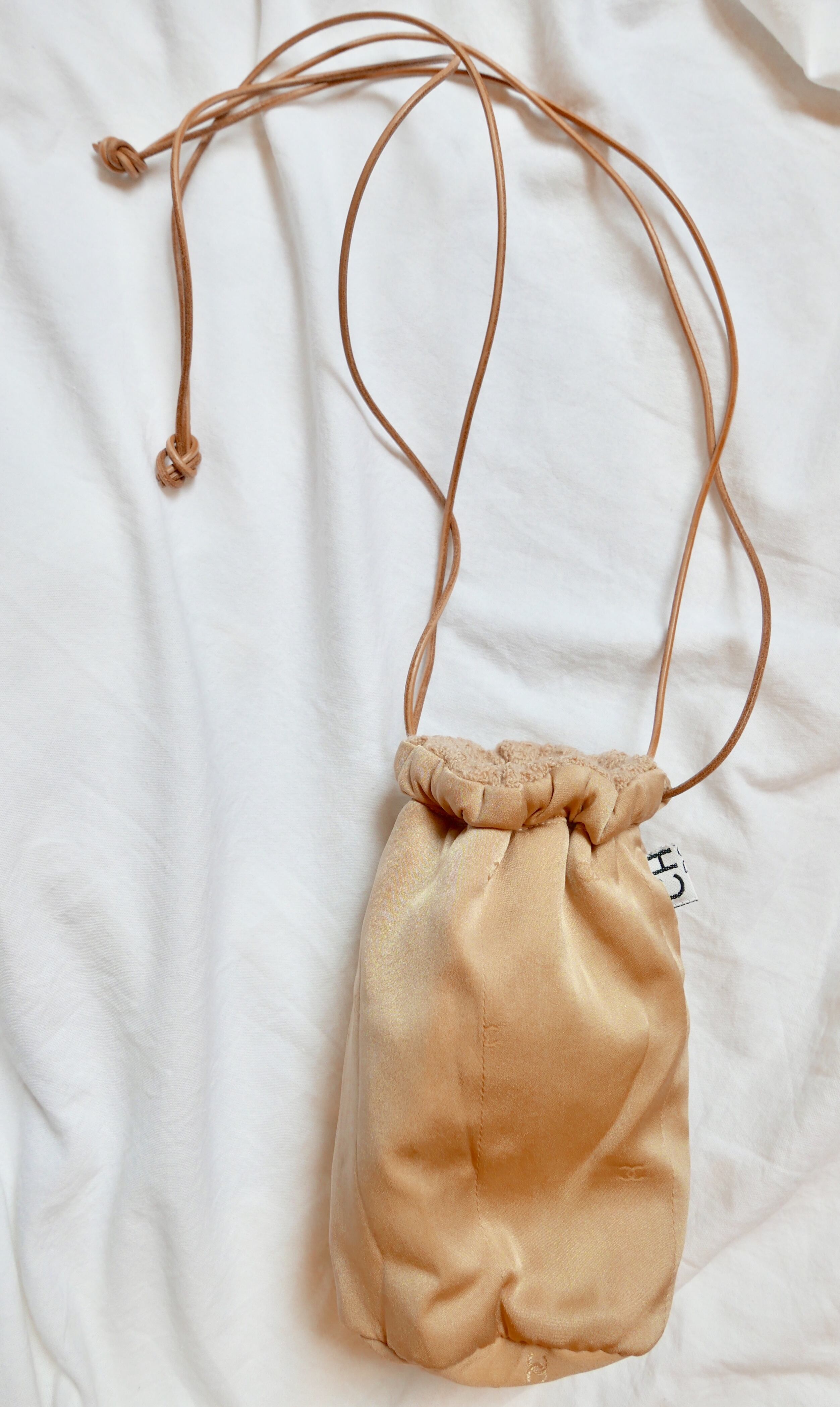そんな価値のある生地の80年代のシャネルジャケット(もう着れなくなったもの!)を解体し、デザインして蘇えらせたオリジナルの巾着バッグです。
