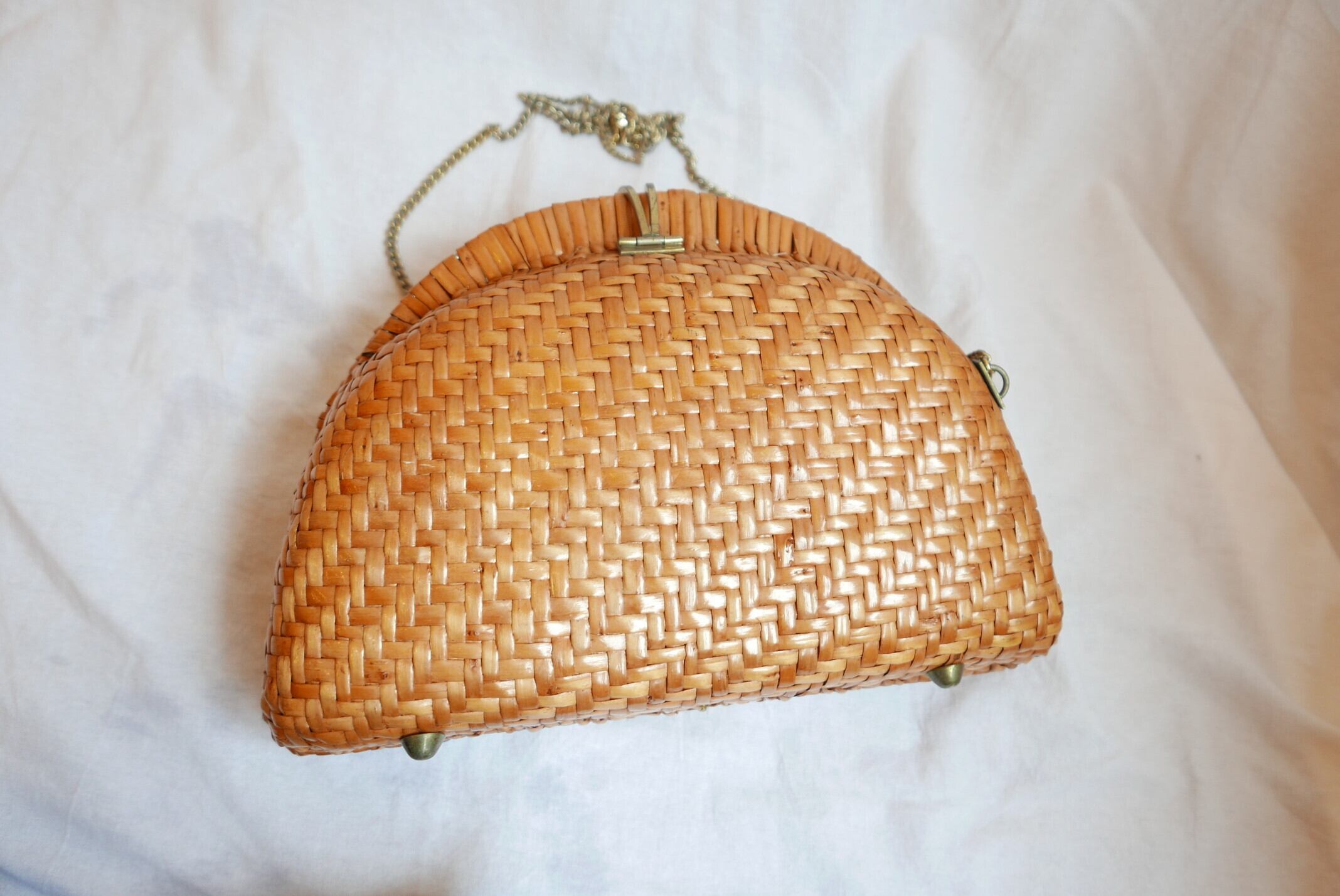 Italy "Half Moon Shape" Rattan Shoulder Bag