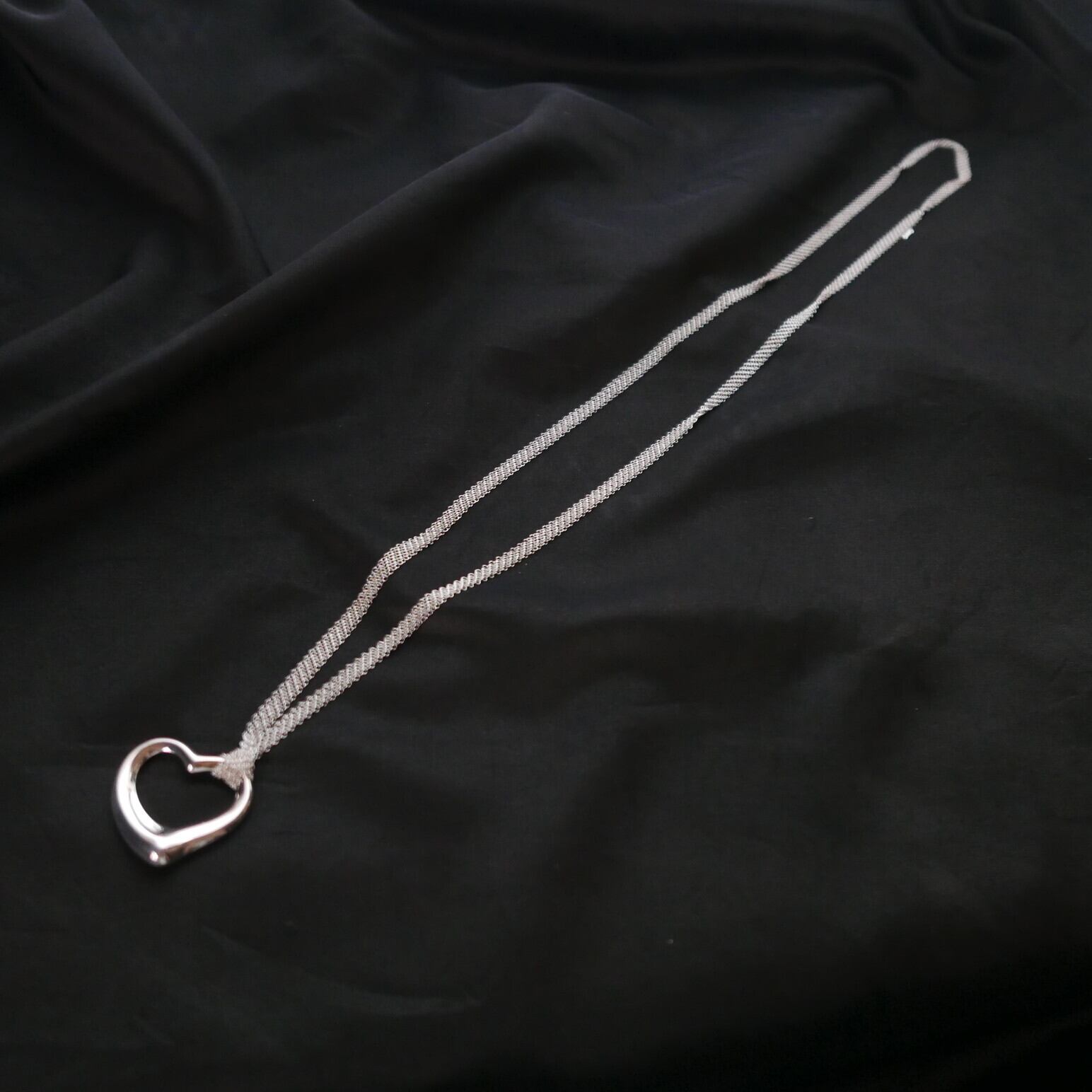 TIFFANY "Elsa Peretti" Silver Open Heart Necklace -Rare!!-