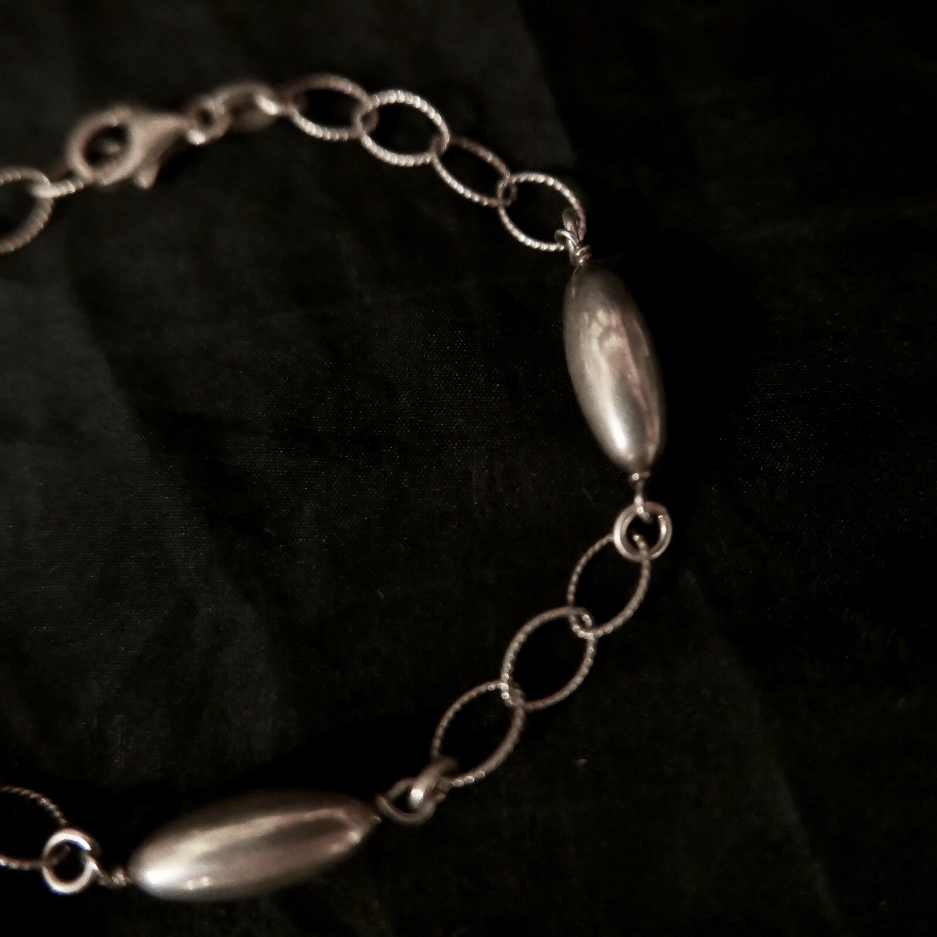 立体感のある楕円形モチーフに華奢なチェーンのバランスがかっこいい☆