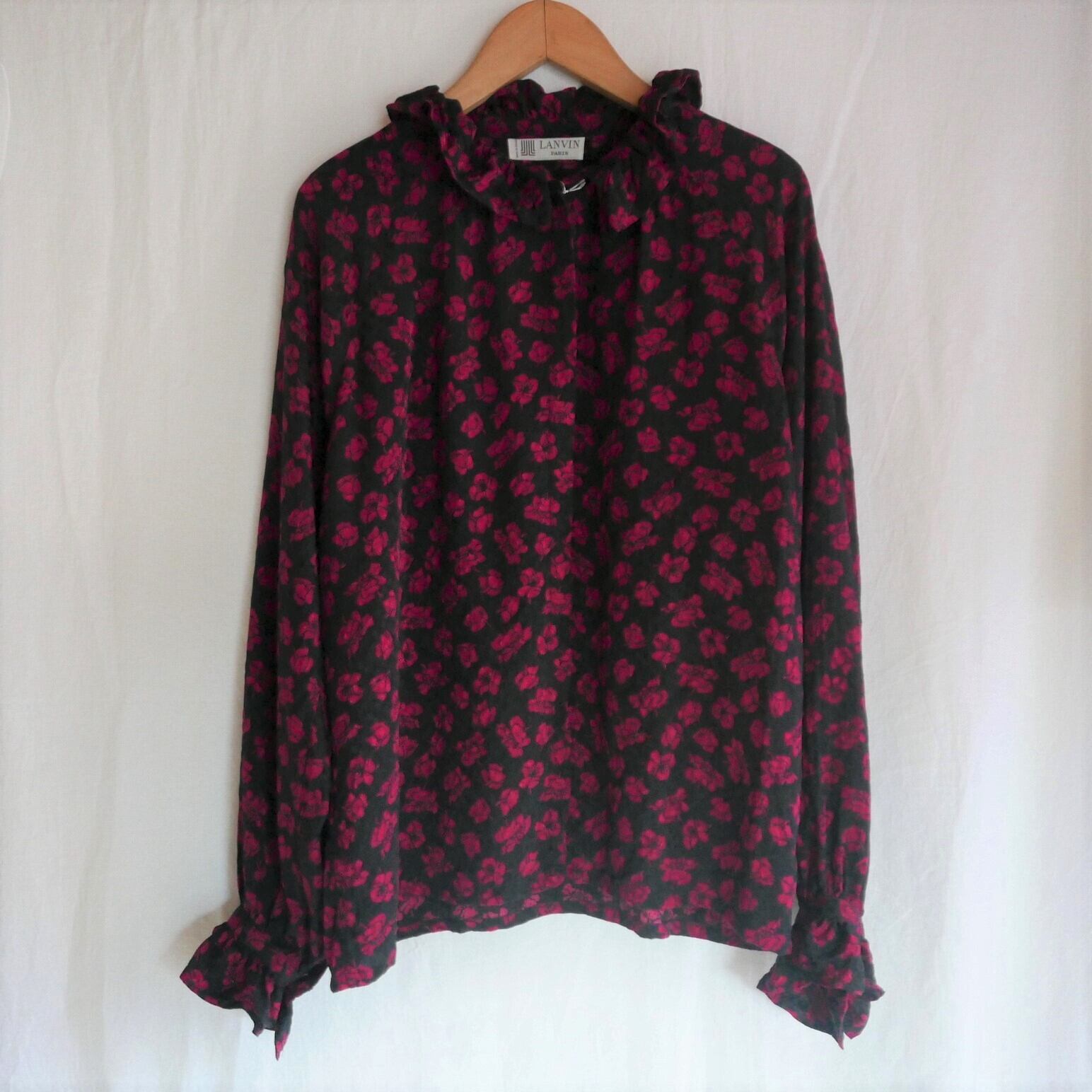 LANVIN 1980's "Flower Print" Long Sleeve Blouse