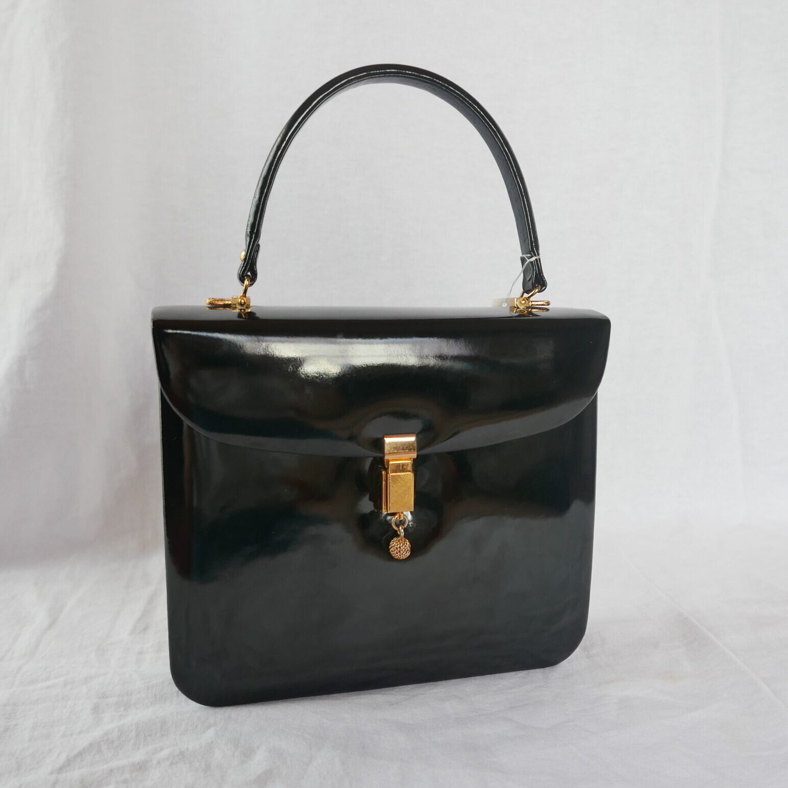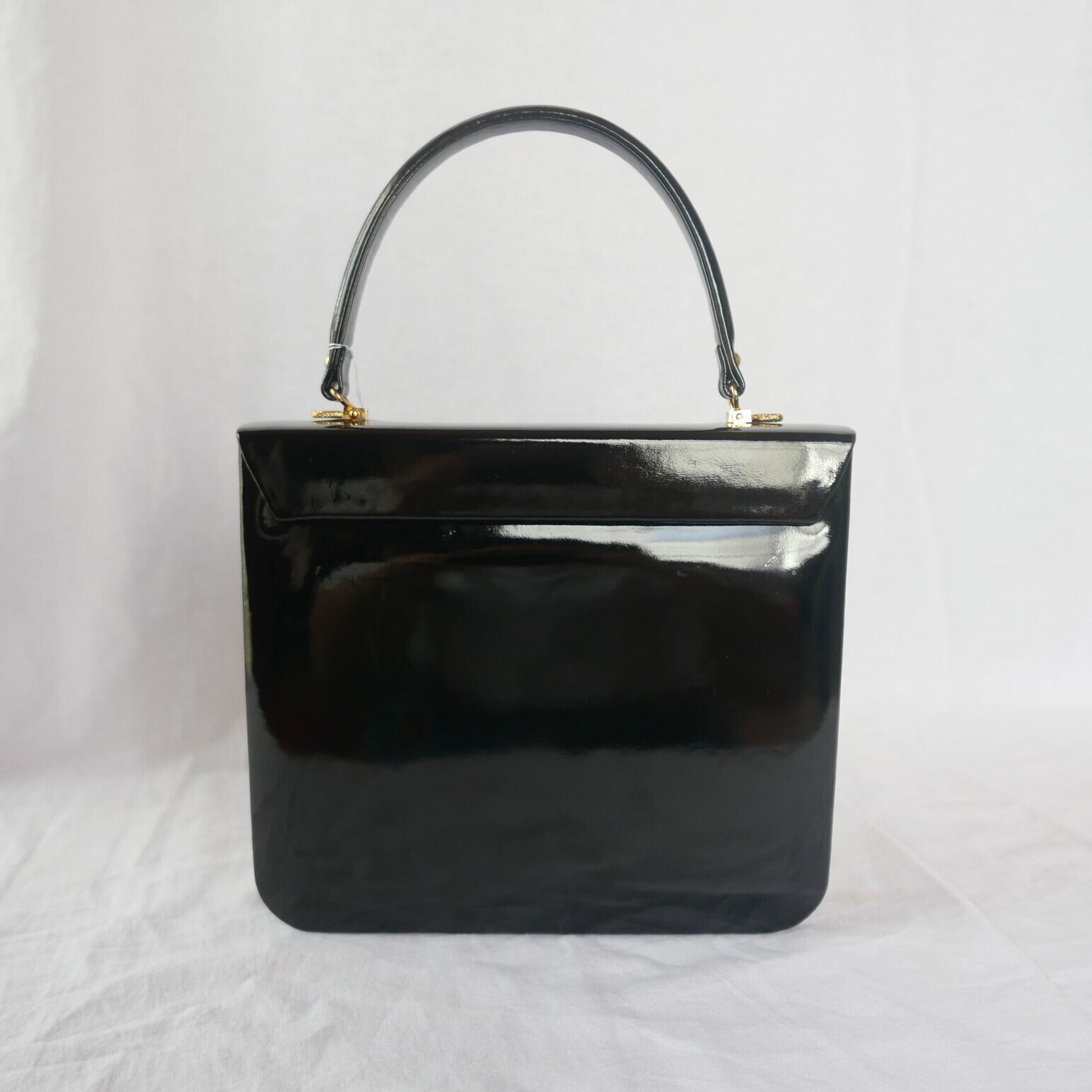 Italy "Unique Buckle" Black Enameled Hand Bag