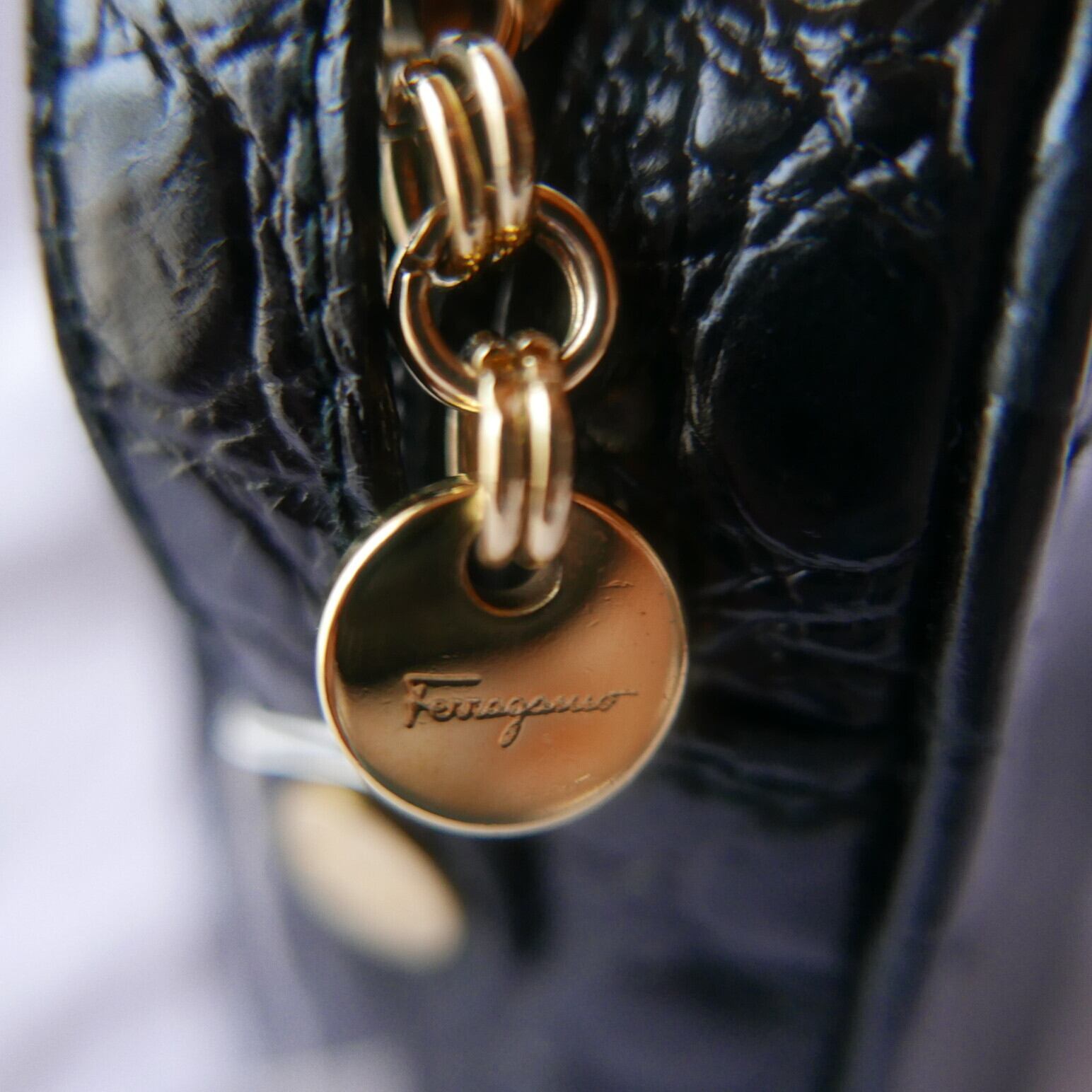 FERRAGAMO "Crocodile Embossed Leather" Vara Shoulder Bag -Black-