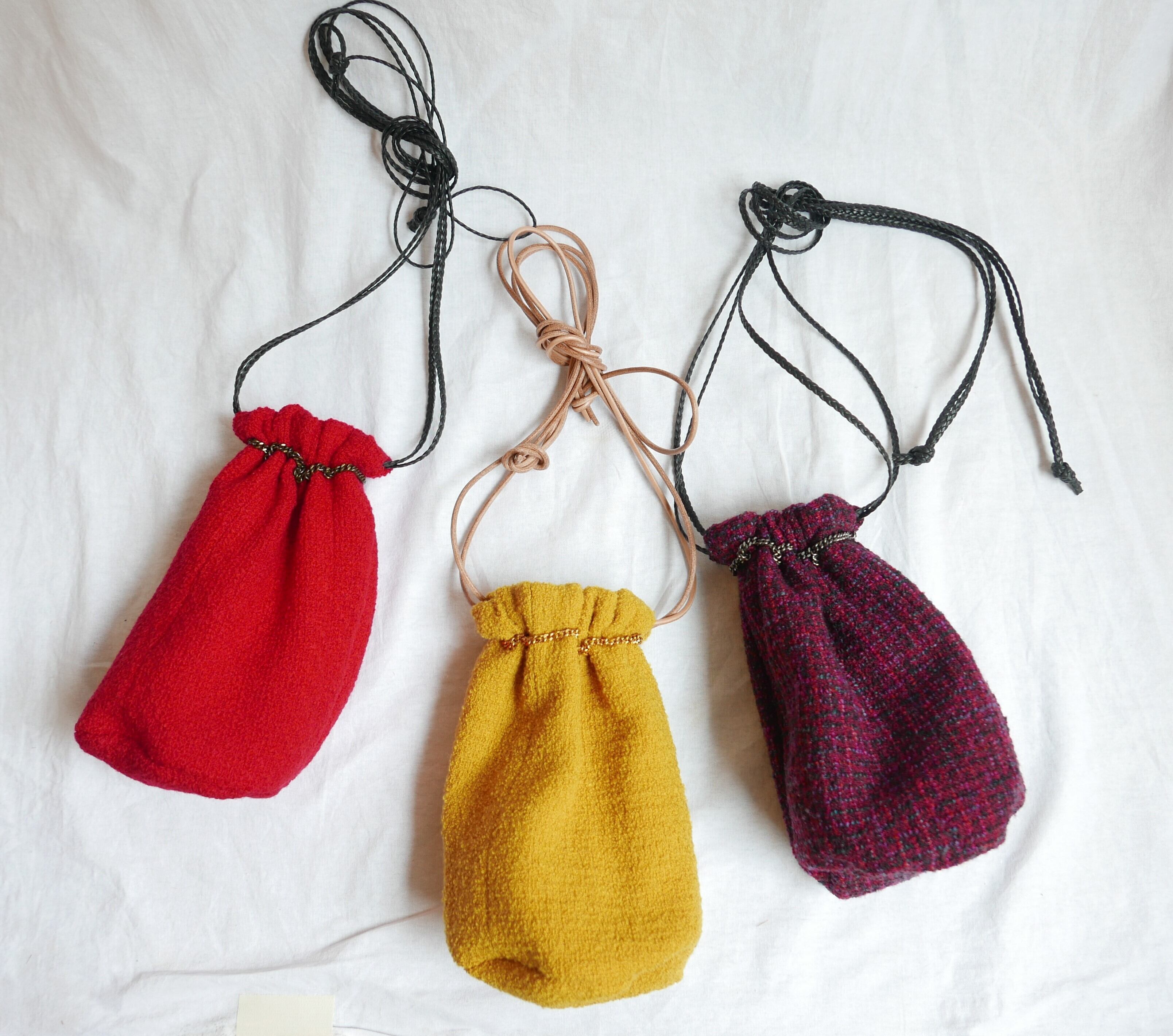 80’sシャネルのツイードジャケット生地の巾着バック: リバーシブル