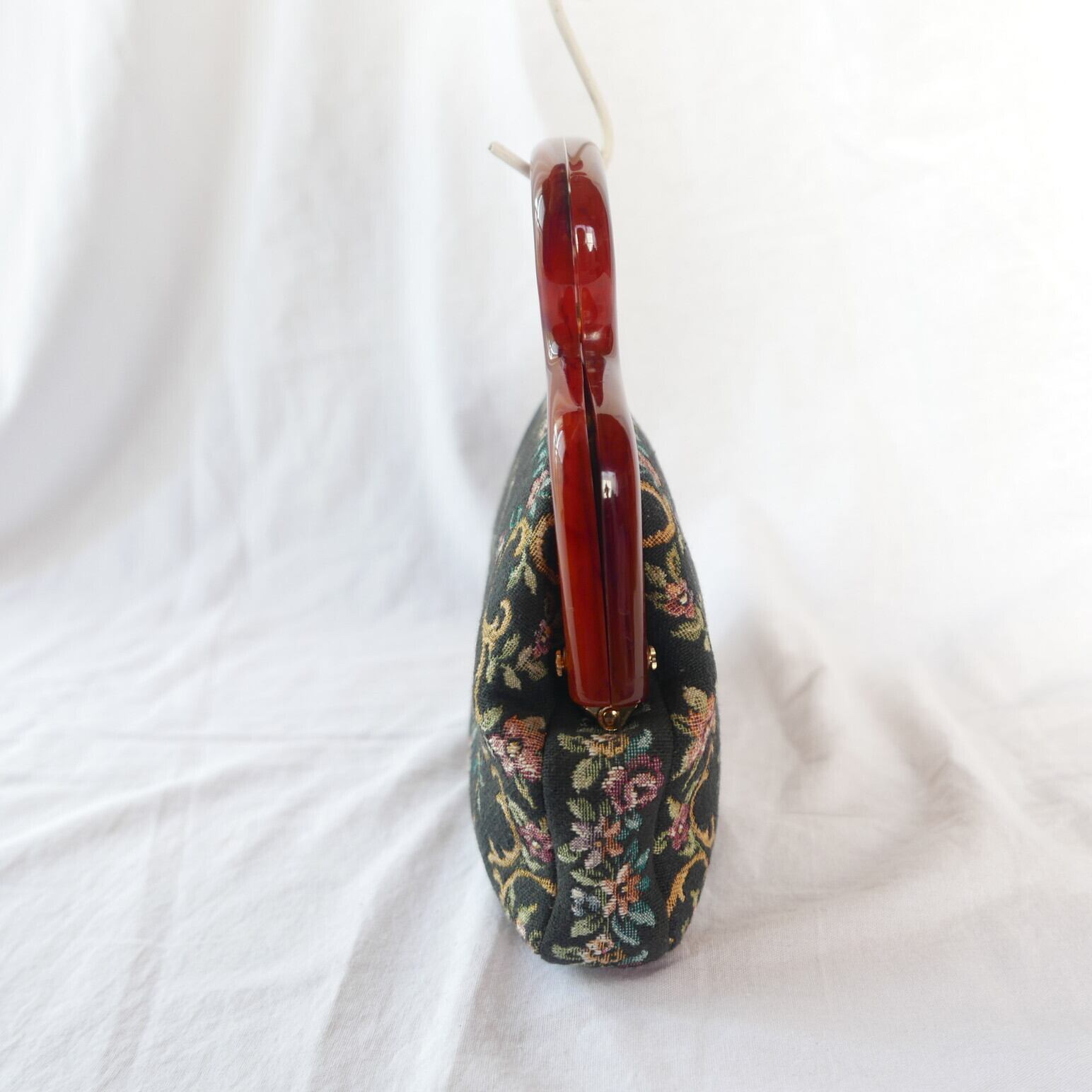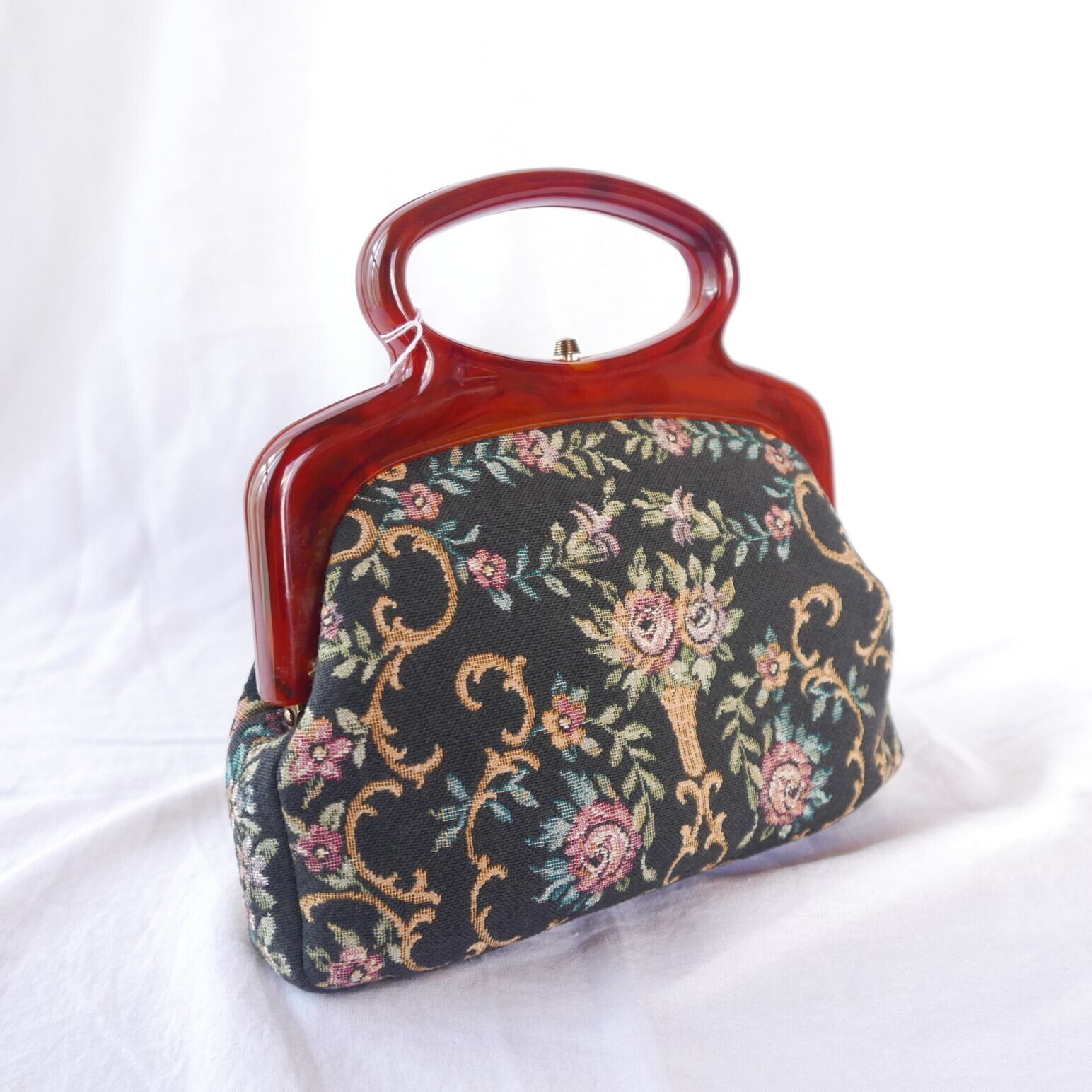 ゴブラン織りにべっ甲風のクラシックな持ち手の佇まいが素敵なデザイン