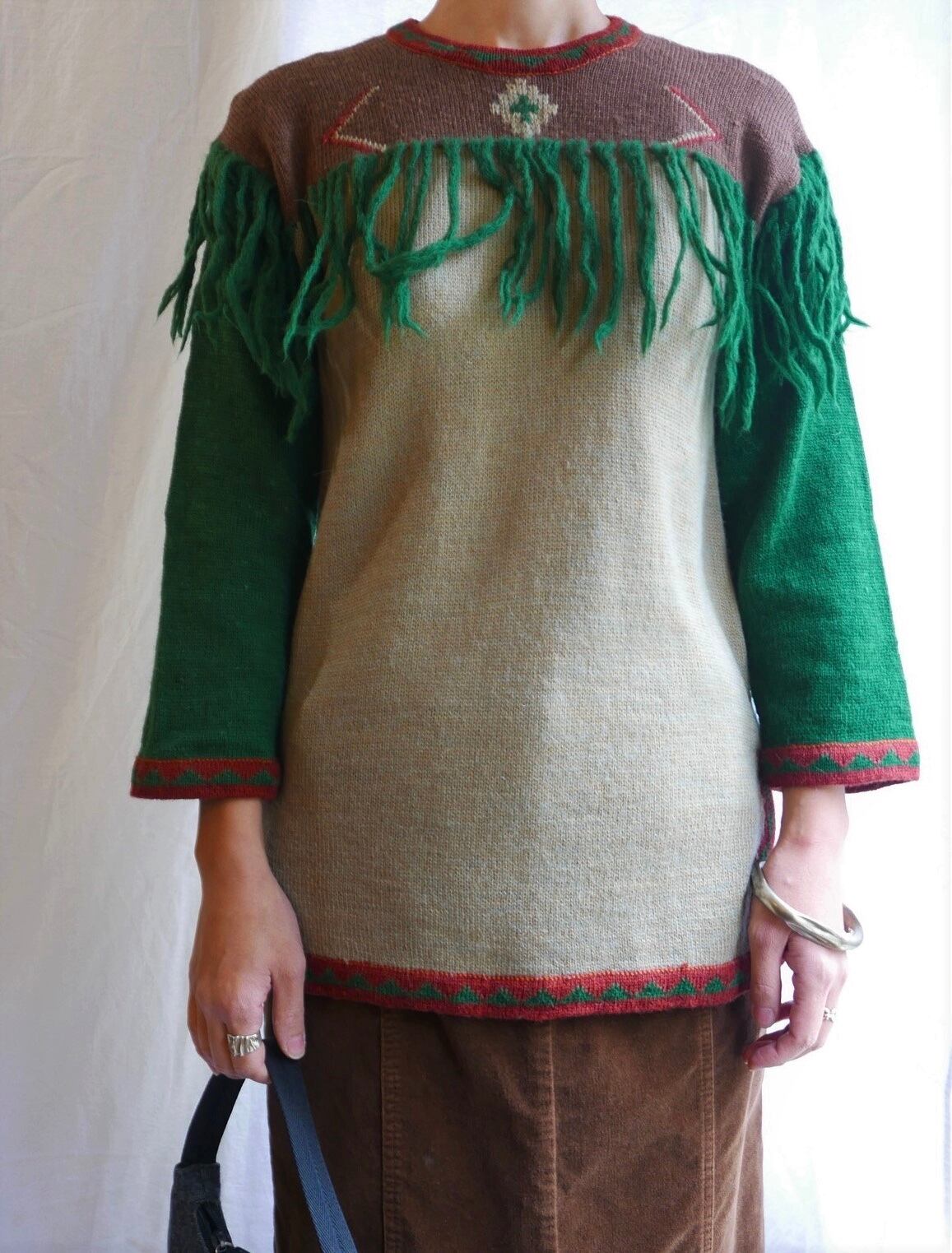 KENZO 1970's(!) Tribal Pattern Fringe Knitted Top