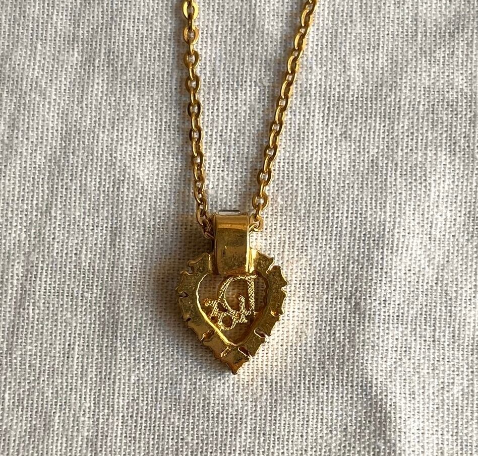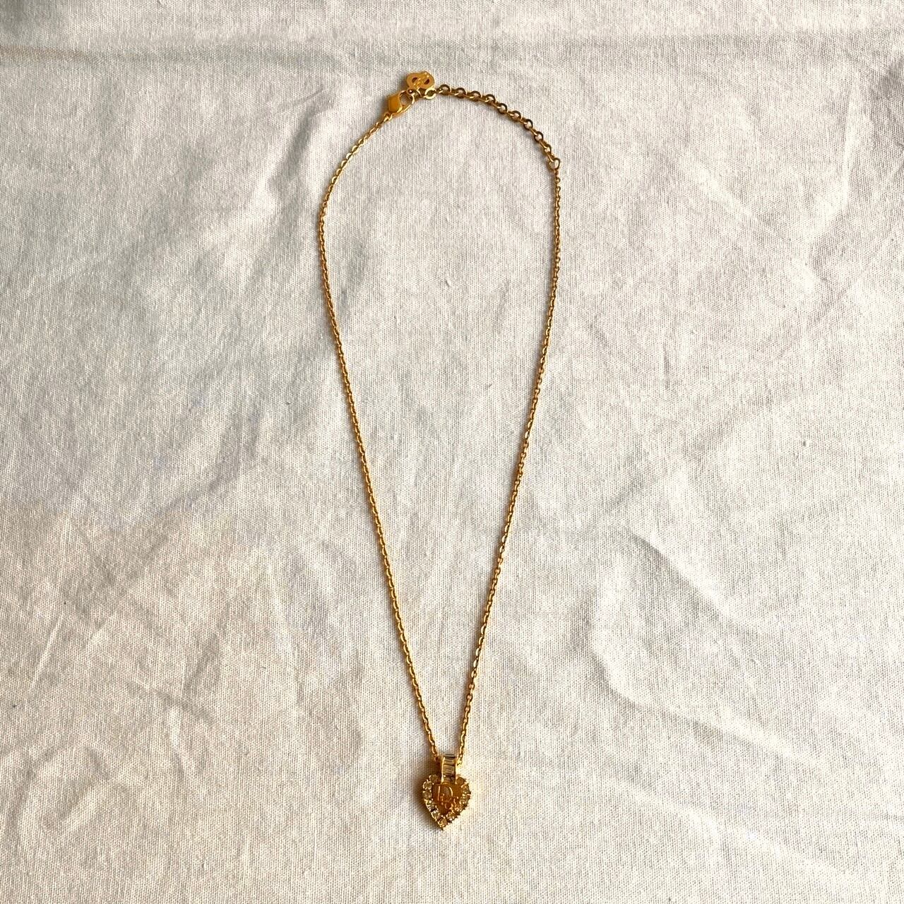 DIOR "Heart Rhinestone × DIOR Logo" Gold Color Necklace -2-