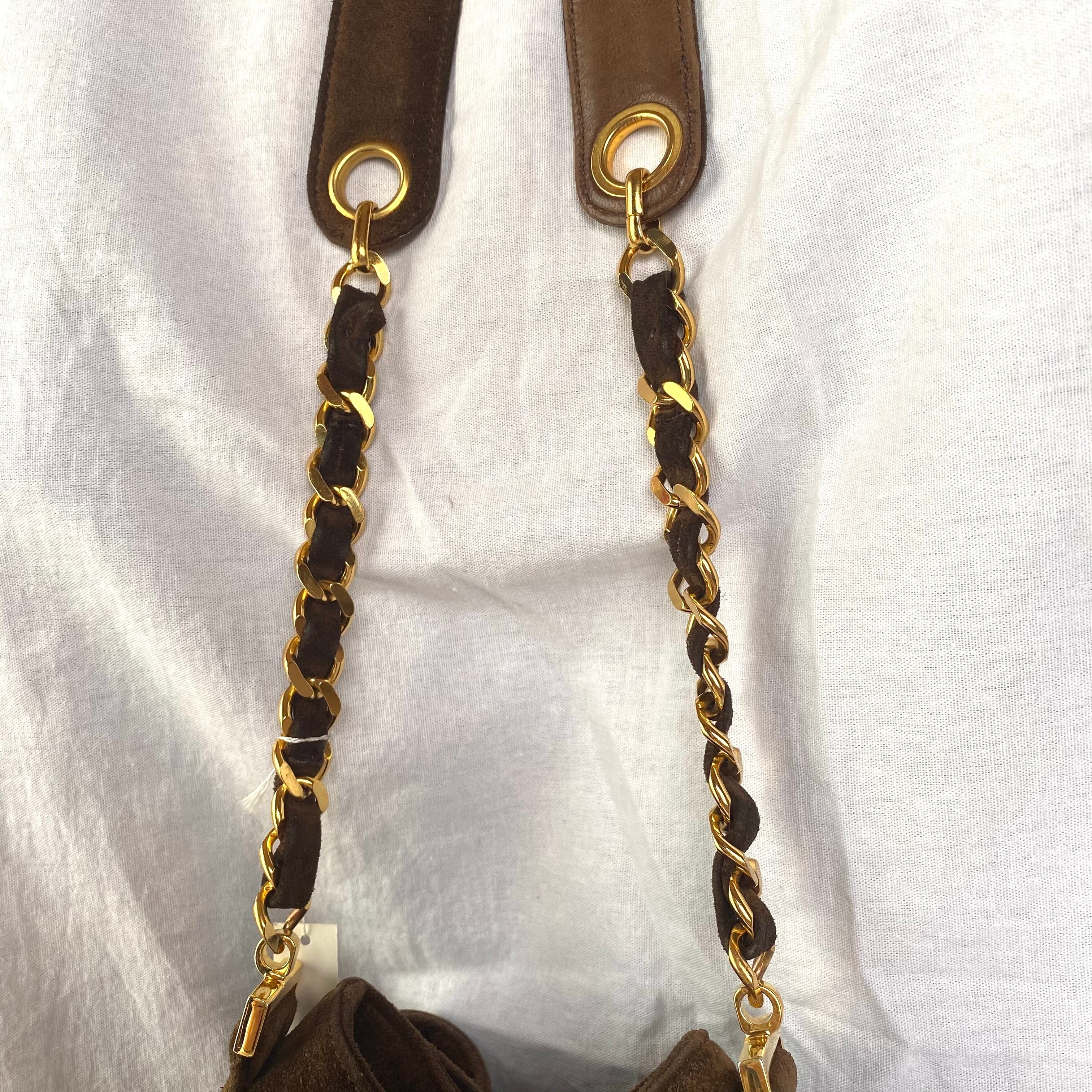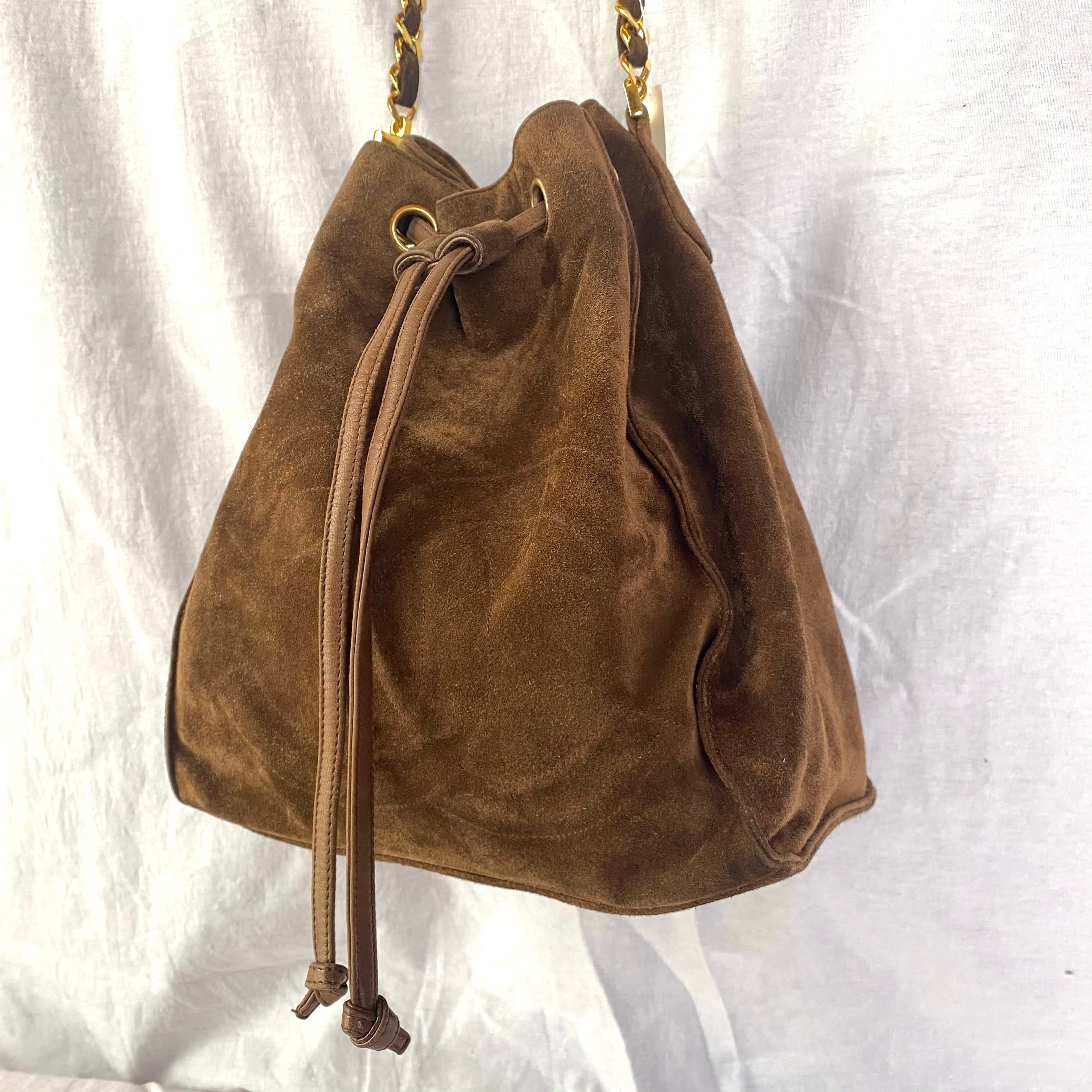 CHANEL "early 2000's" Suede Drawstring Bag -Brown-