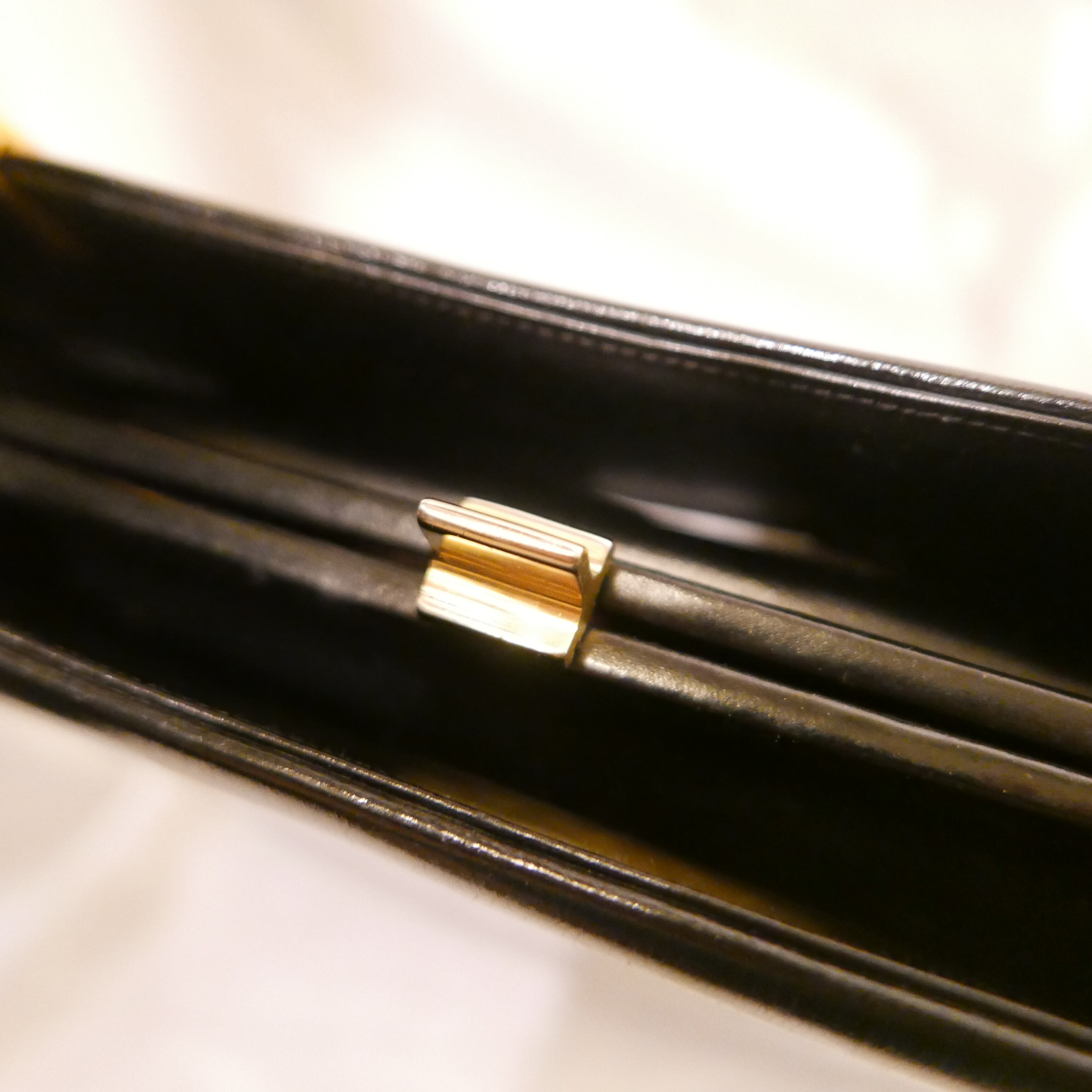 クラシックで、上質な艶やかブラックレザーのハンドバック