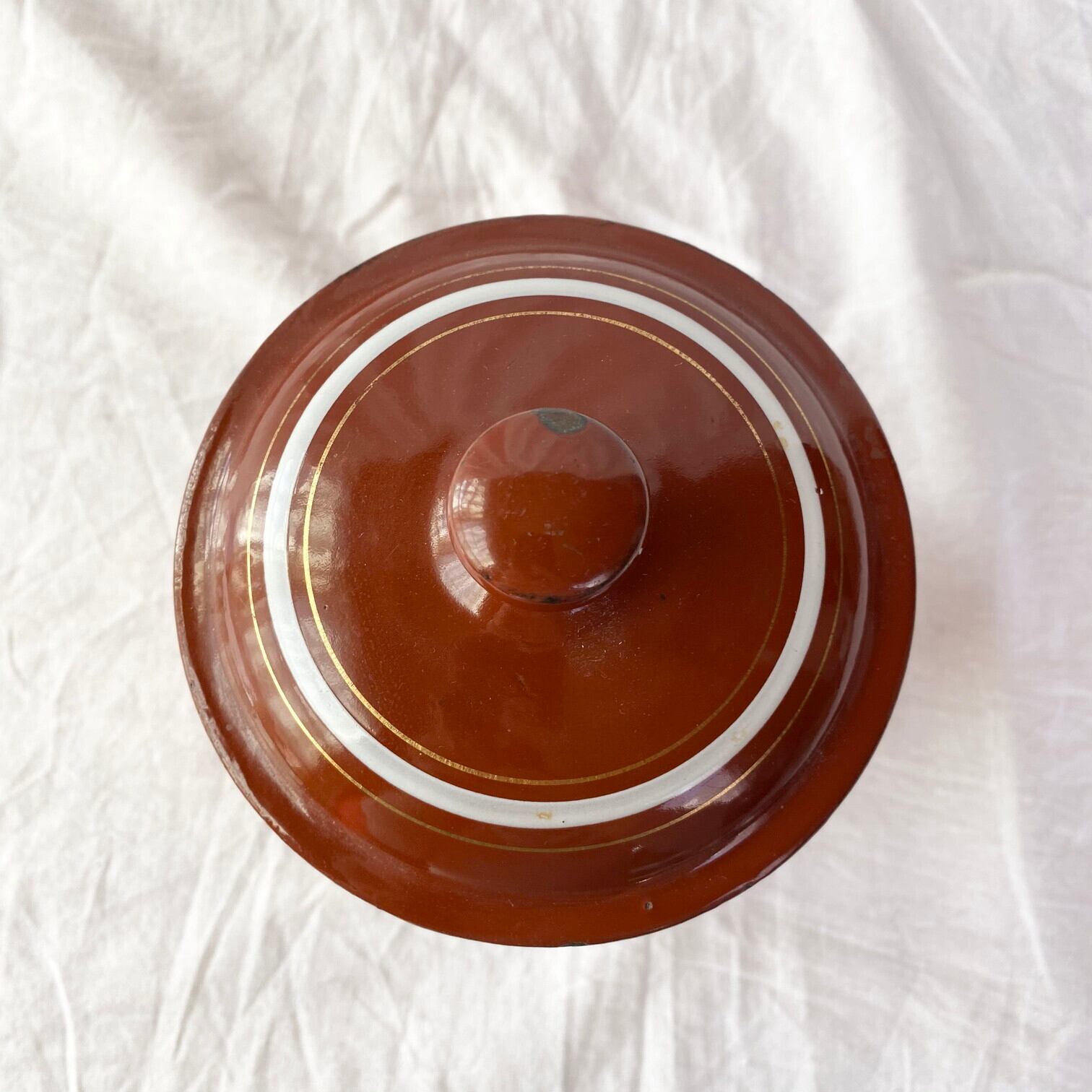 蓋の取っ手や、ゴールドと白のLINE、周りのポコポコとしたシェイプもうっとり、手作業ならではの素朴な温かみのある雰囲気がたまりません。