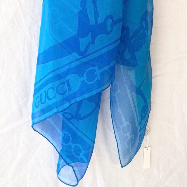 GUCCI "Horsebit" See Through Scarf -Blue-