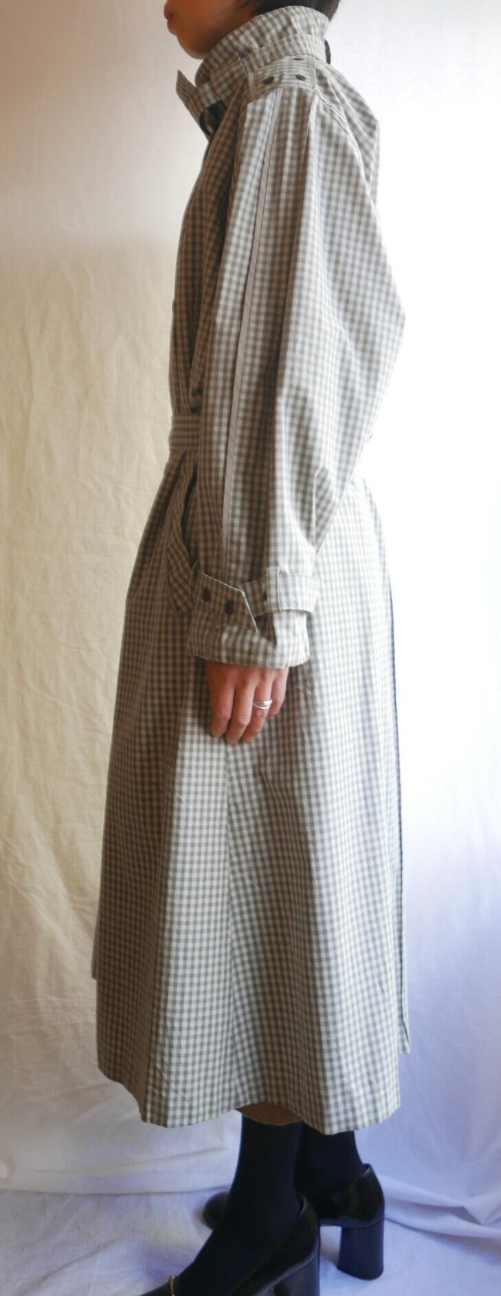 スタンドカラーの襟元, 肩のボタン、所々のタックが凝っていて、とてもmodeな雰囲気!
