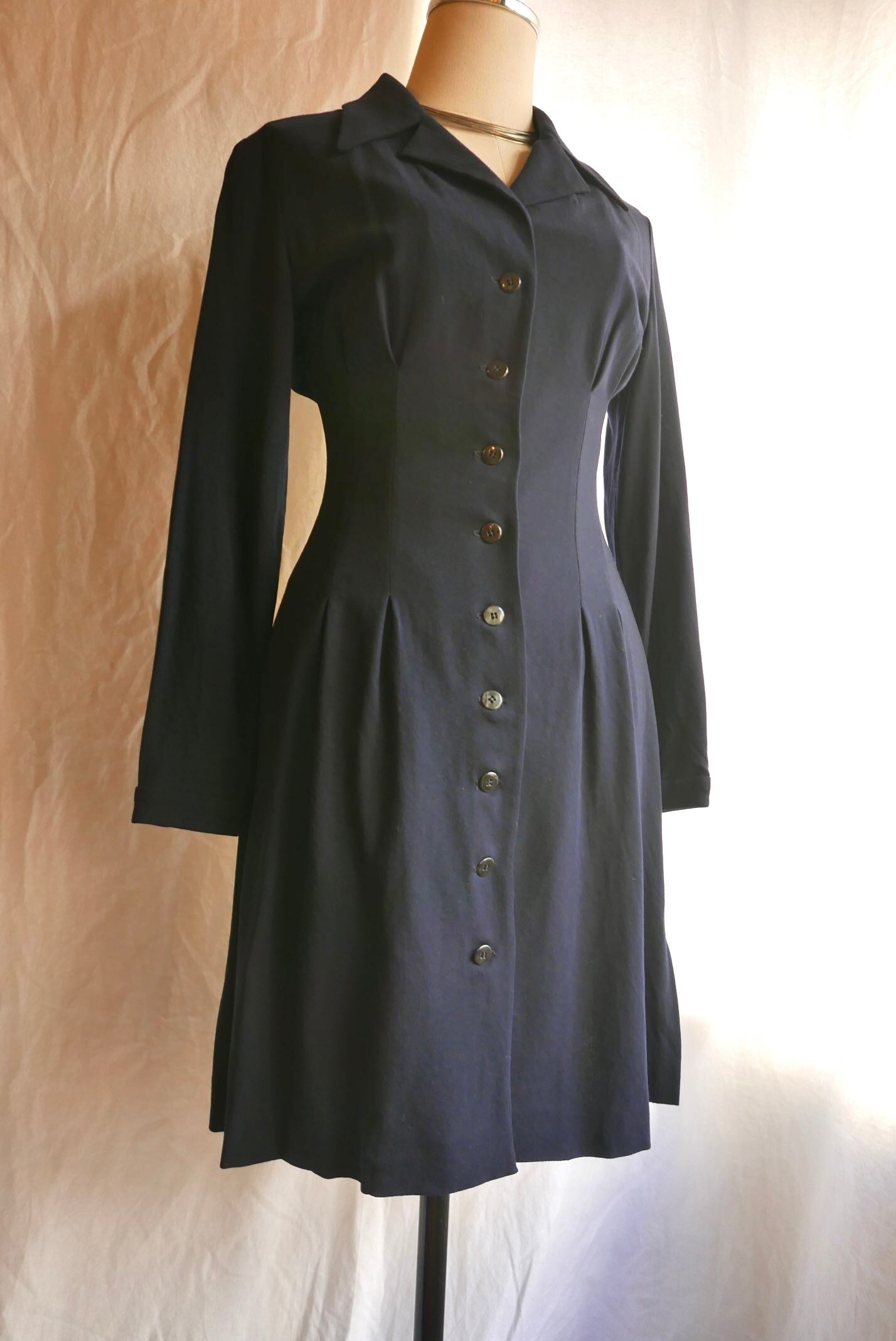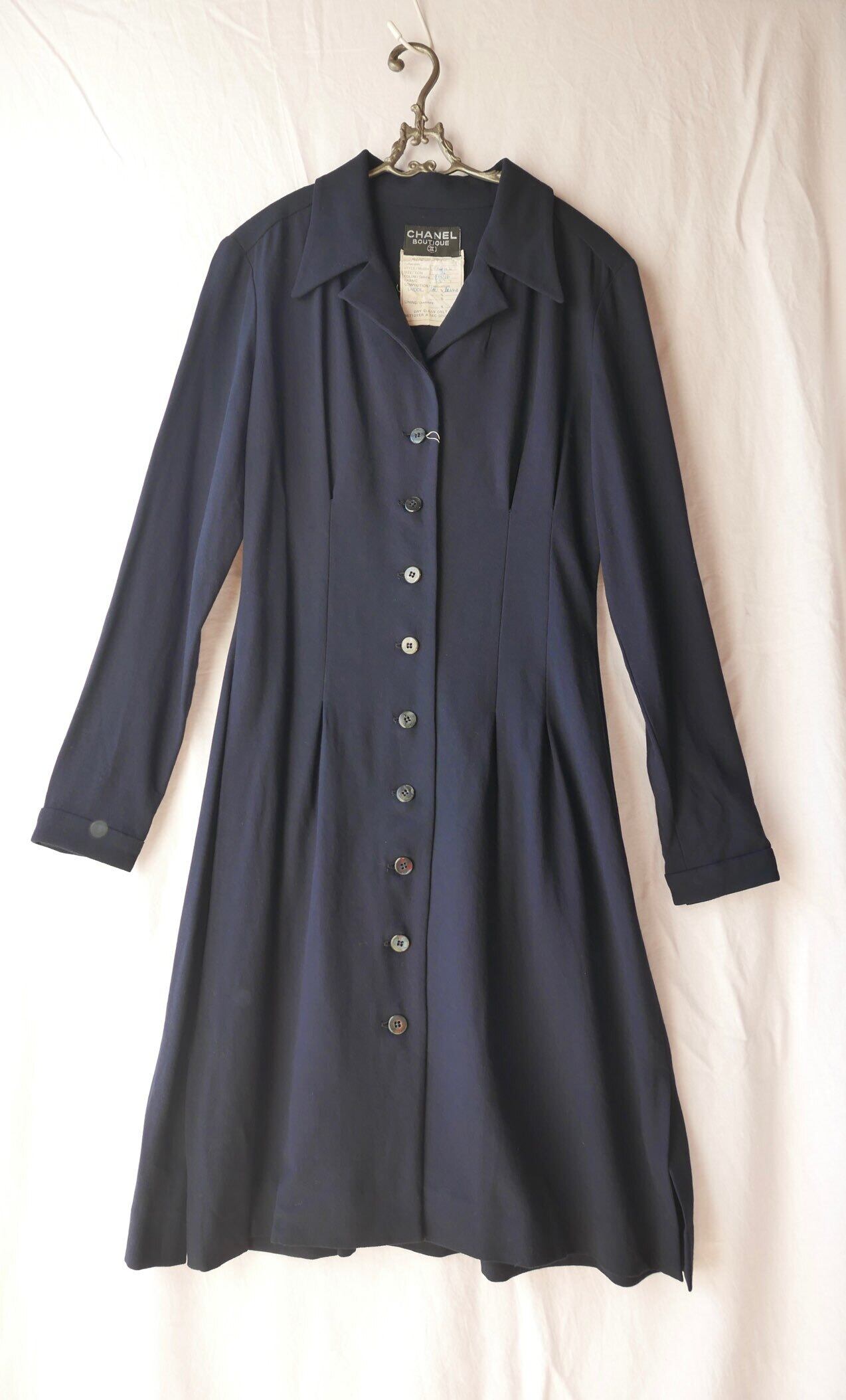 薄手のウールの、シャネルらしい凝ったラインのワンピース。