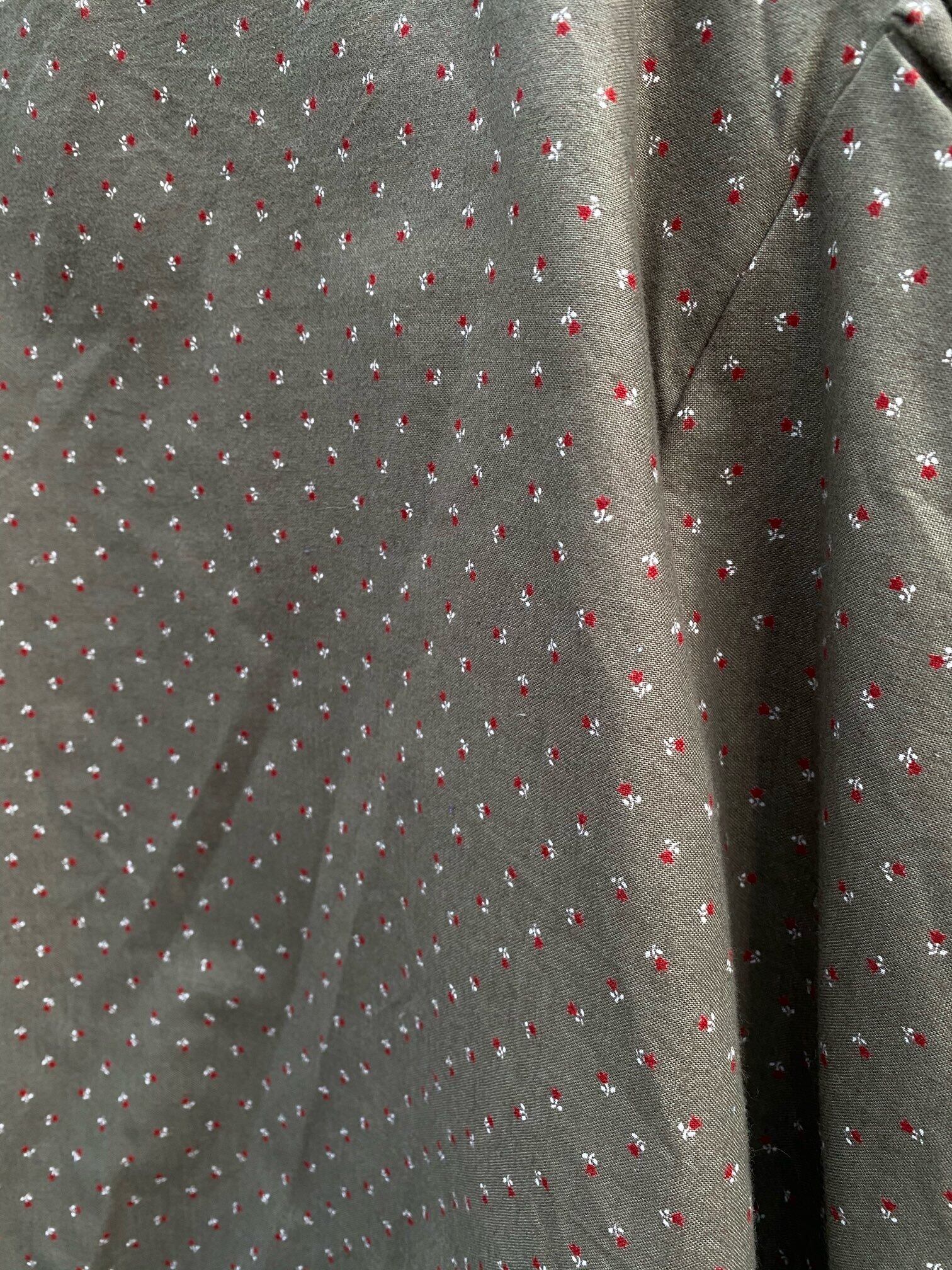 カーキのベースカラーに優しい小花柄もユニークでステキ。。。