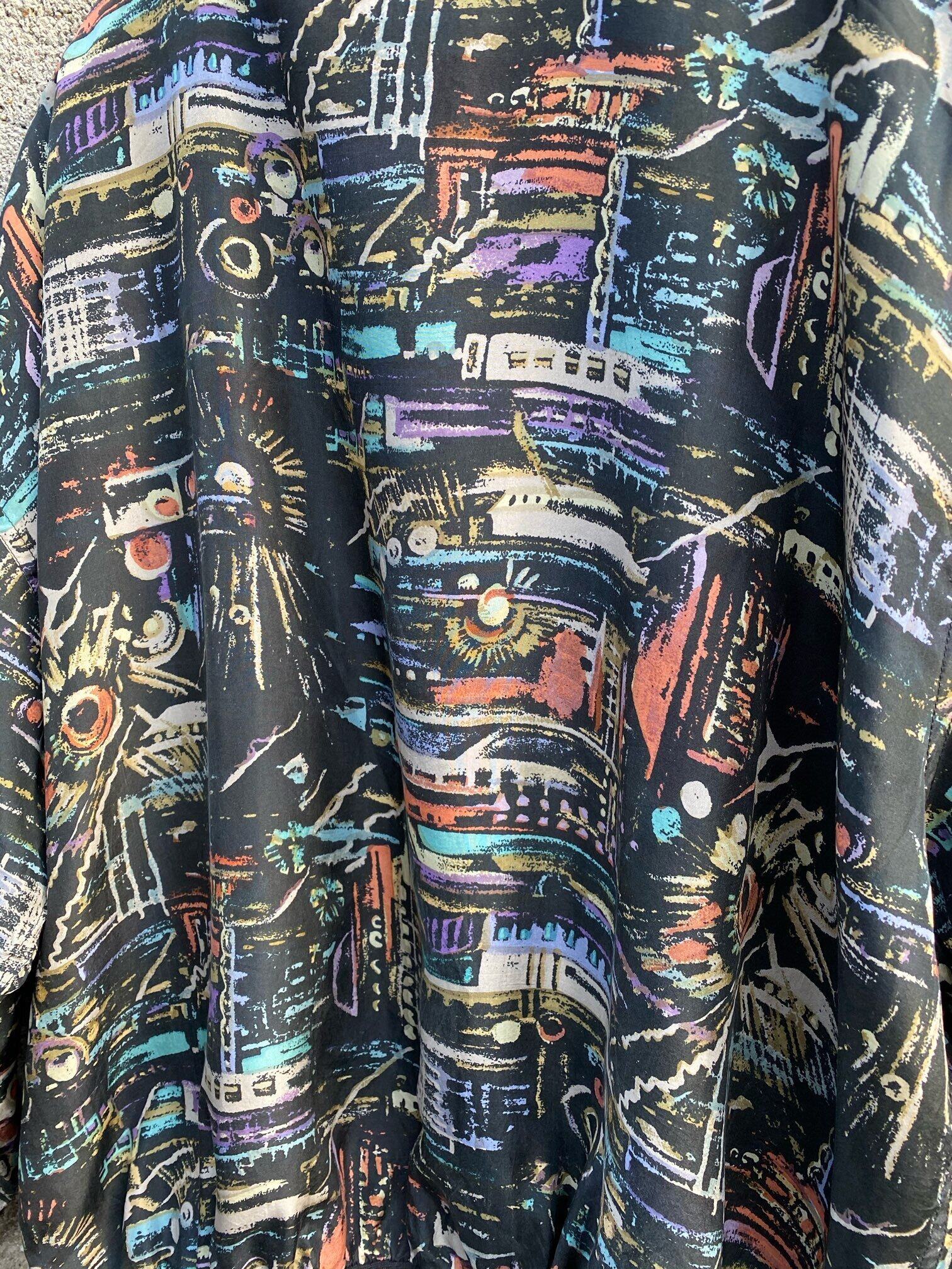 Silkならではの高級感ある生地に、カラフルな総柄の組み合わせが絶妙!