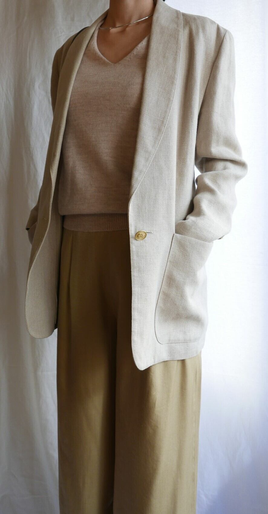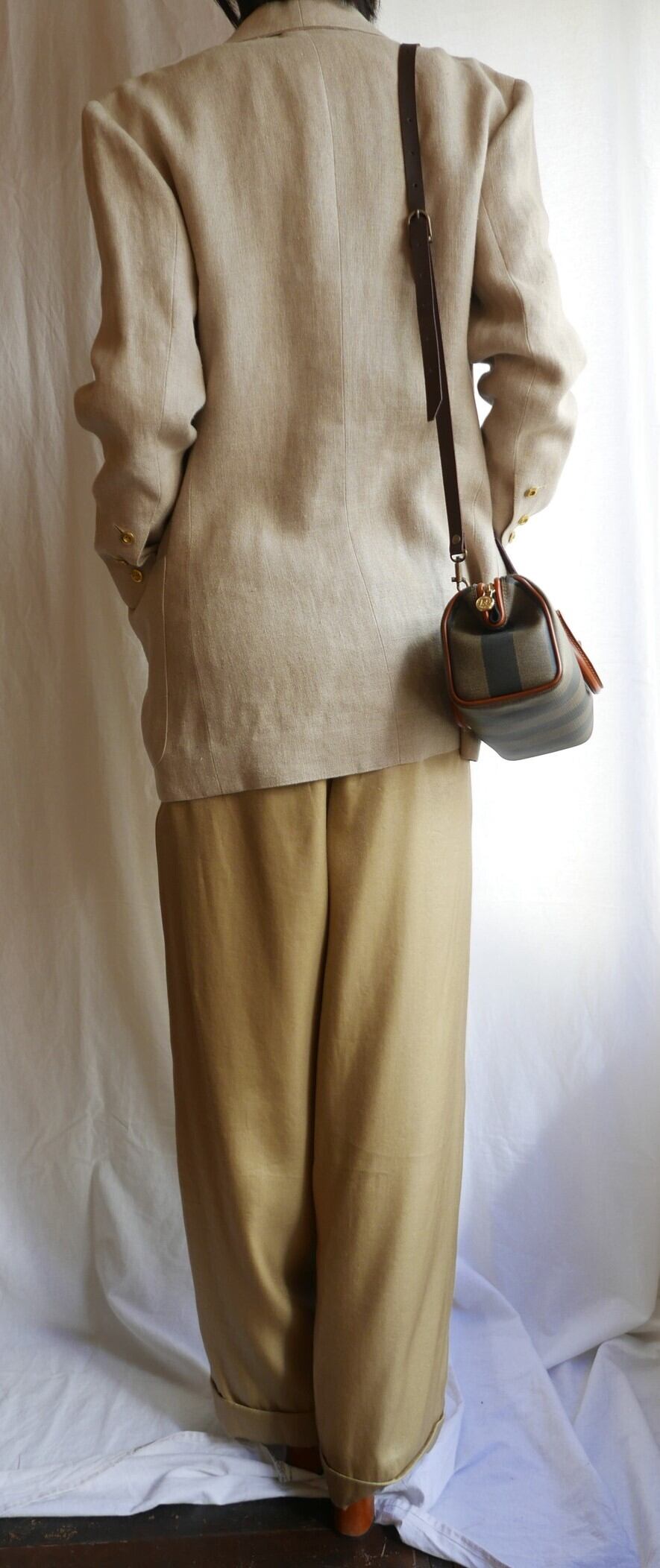 素材:表記が取れておりますが、表地リネン、裏地シルクです。