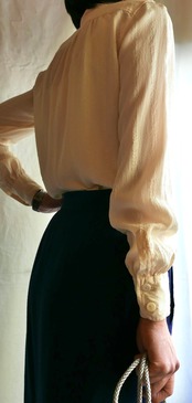 うっすらと浮かび上がるように繊細な草花の刺繡が施されていて、シルク特有のふんわり上品な光沢が更に映える一枚です。