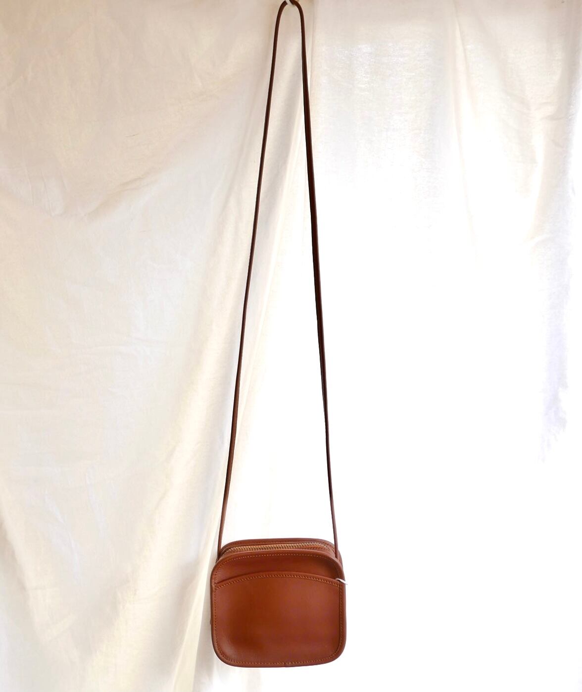 上品なブラウンカラーのミニショルダー、コーチのレザーヴィンテージの中ではとても珍しい形です。
