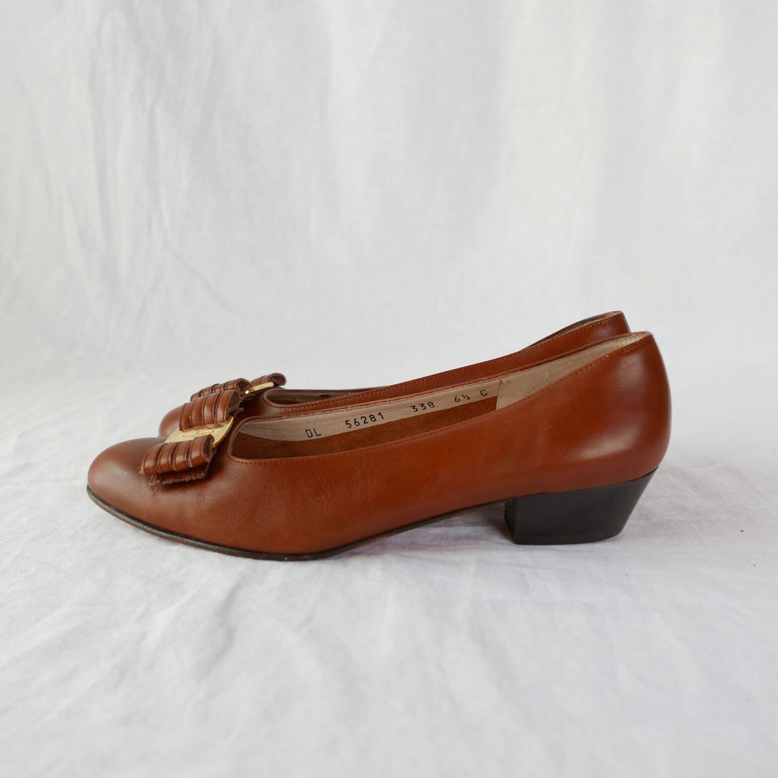 FERRAGAMO "Vara" Pumps "Slit Ribbon" -Brown-