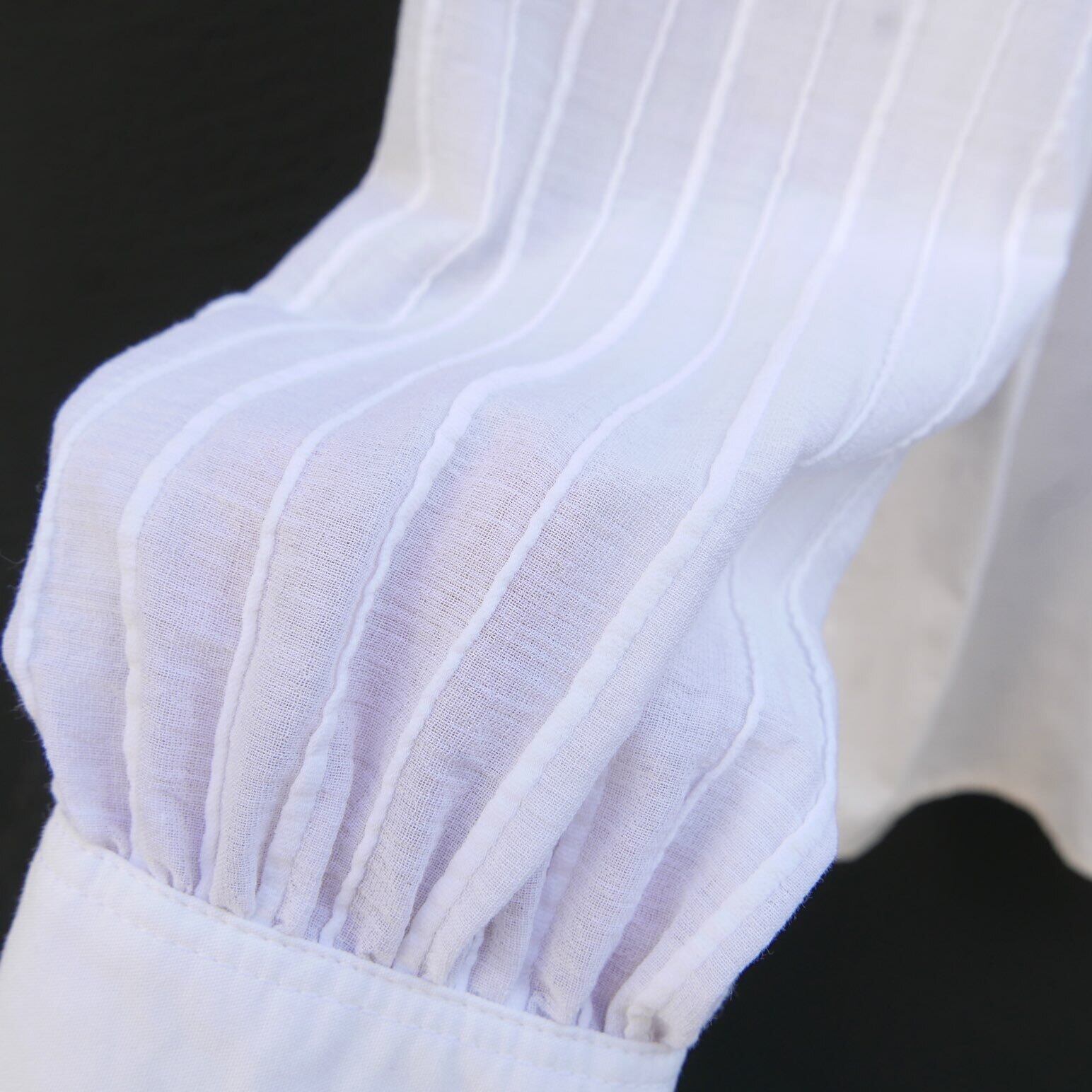 緩やかなパフスリーブにくるみボタンが女性らしさを演出してくれてます