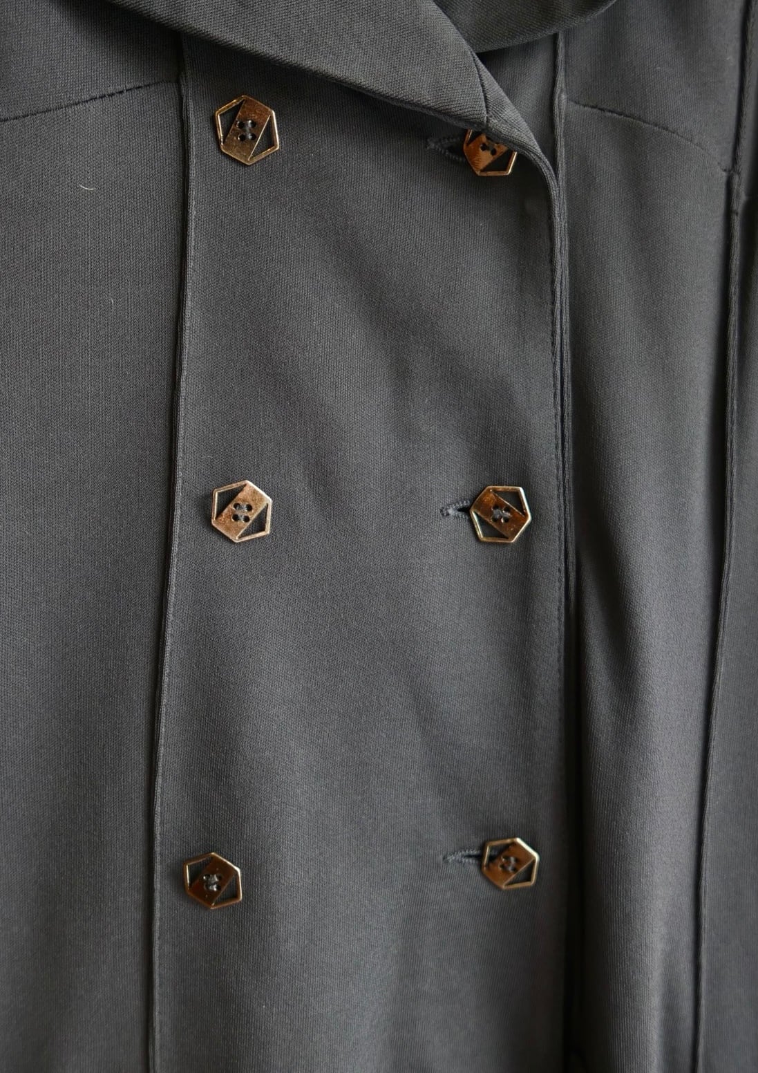 透け感のある生地、ビッグカラーに六角形のダブルボタンなど、coolでカールらしい攻めたモード感デザインです☆