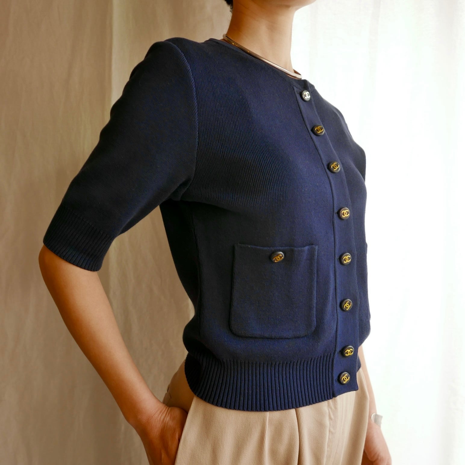 CHANEL Short-Sleeve Knited Cardigan -Navy-