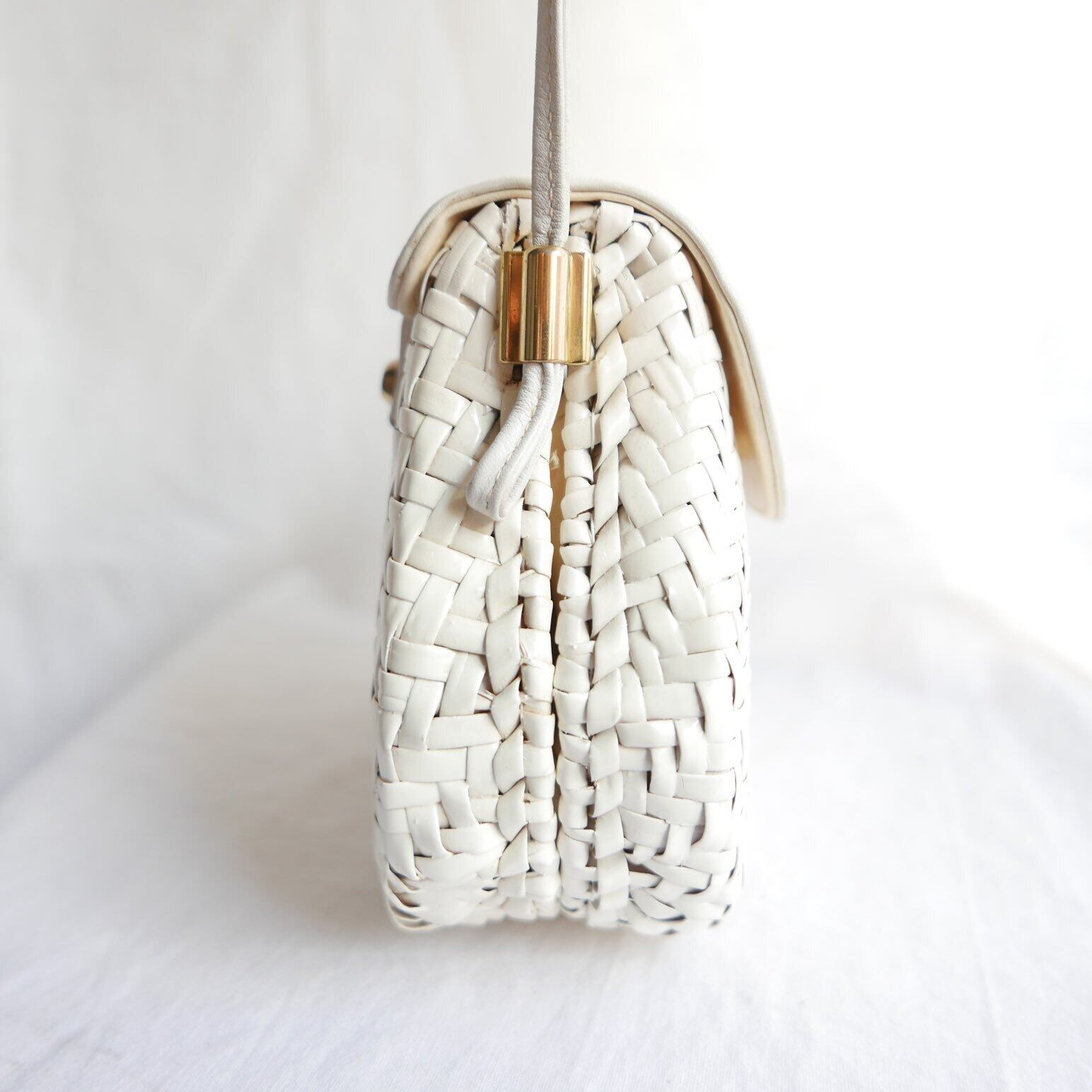 ブラック×ゴールドのVモチーフがcoolな印象のラタンバッグ