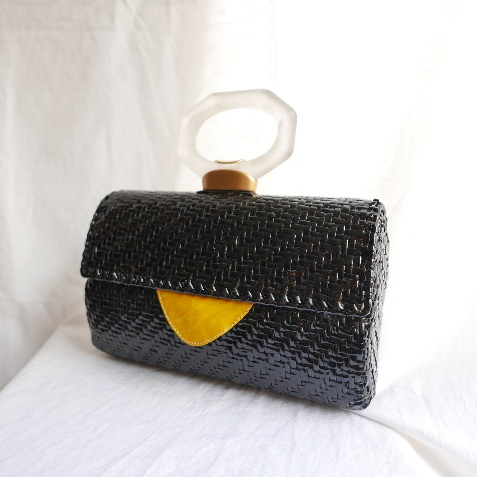 Italy "Clear Handle" Rattan Hand Bag -Black×Yellow-