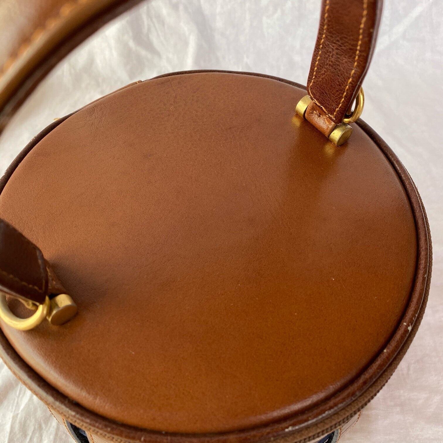 French Leather Striped Hand Bag -Brown×Navy-