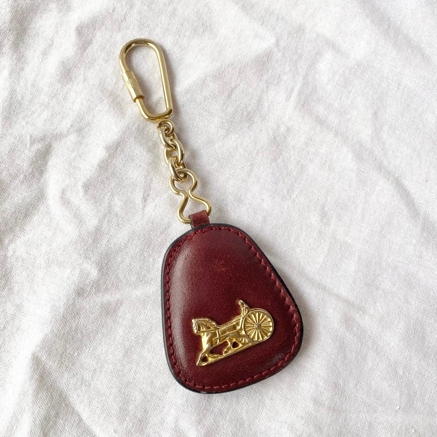 ワインレッドのレザーに馬車モチーフ、気品あるセリーヌキーホルダー