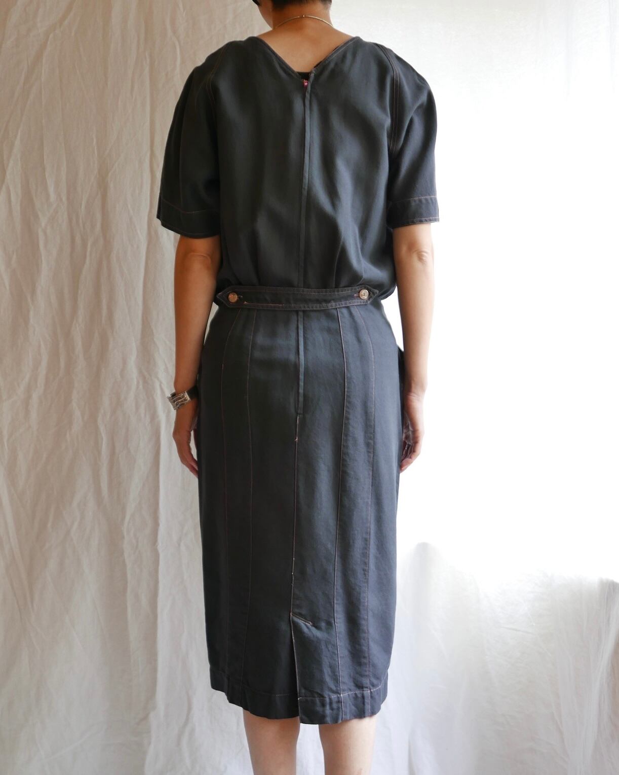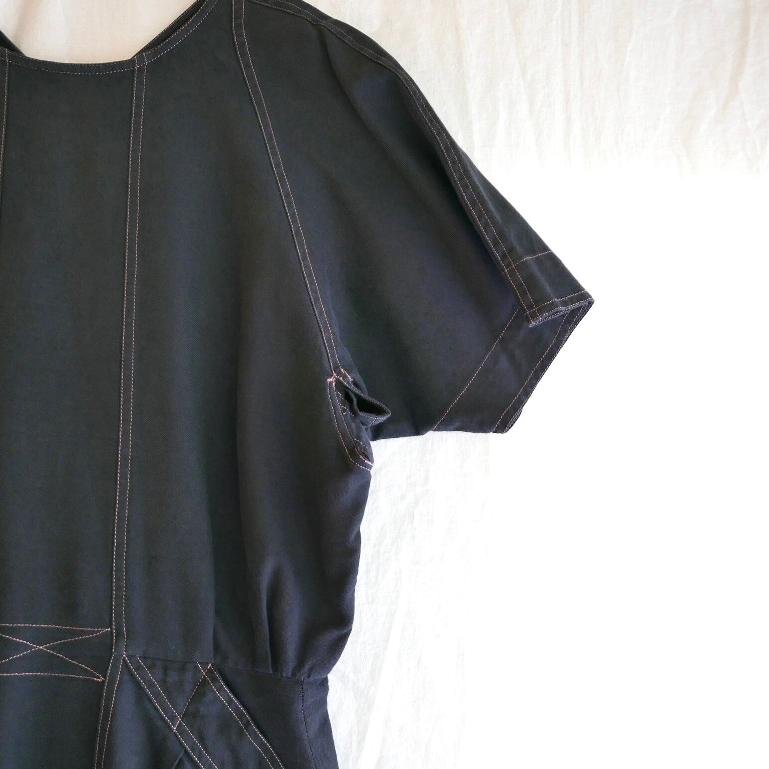 後染めのチャコールブラックにピンクのパイピングが映えるワンピ!