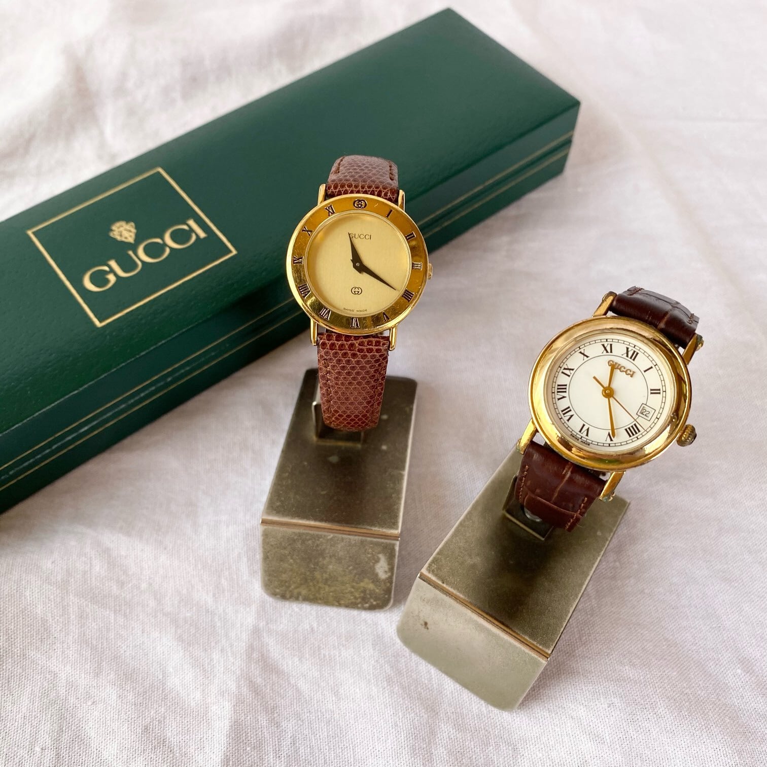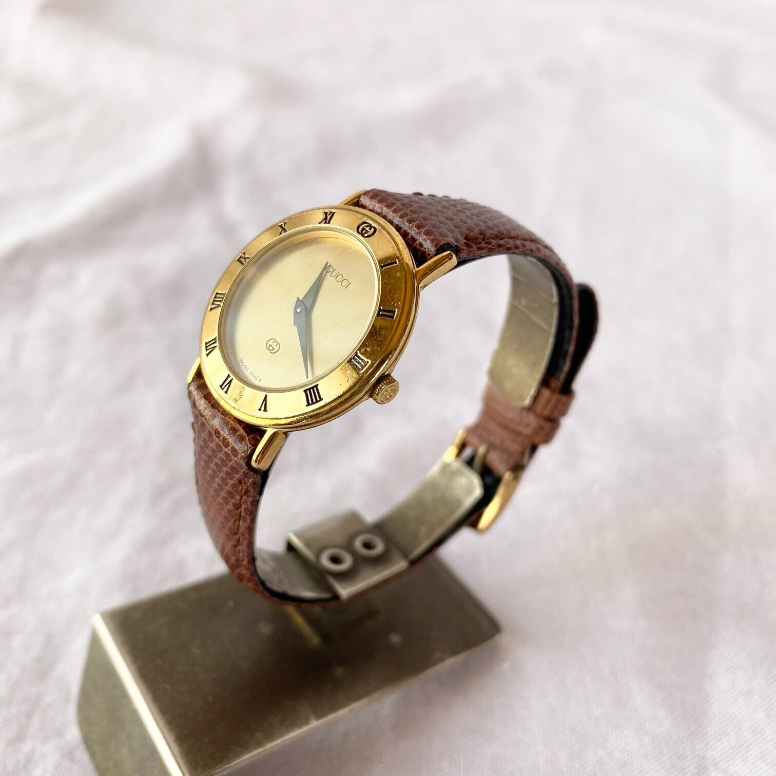 GUCCI Round Shape Watch -Gold(color)×Brown Belt-