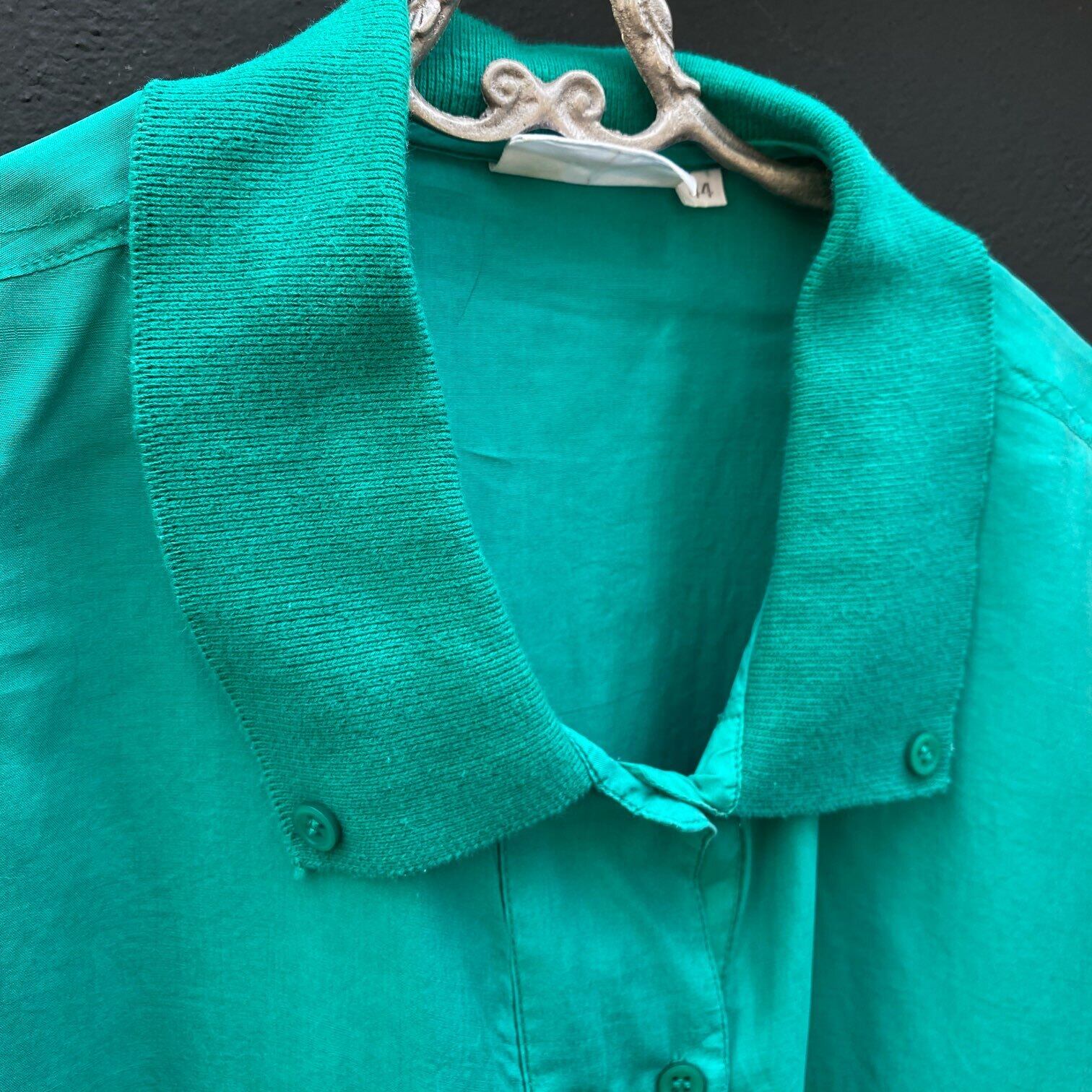 Vividなグリーンに柔らかな風合いのシルク生地が素敵なブラウス