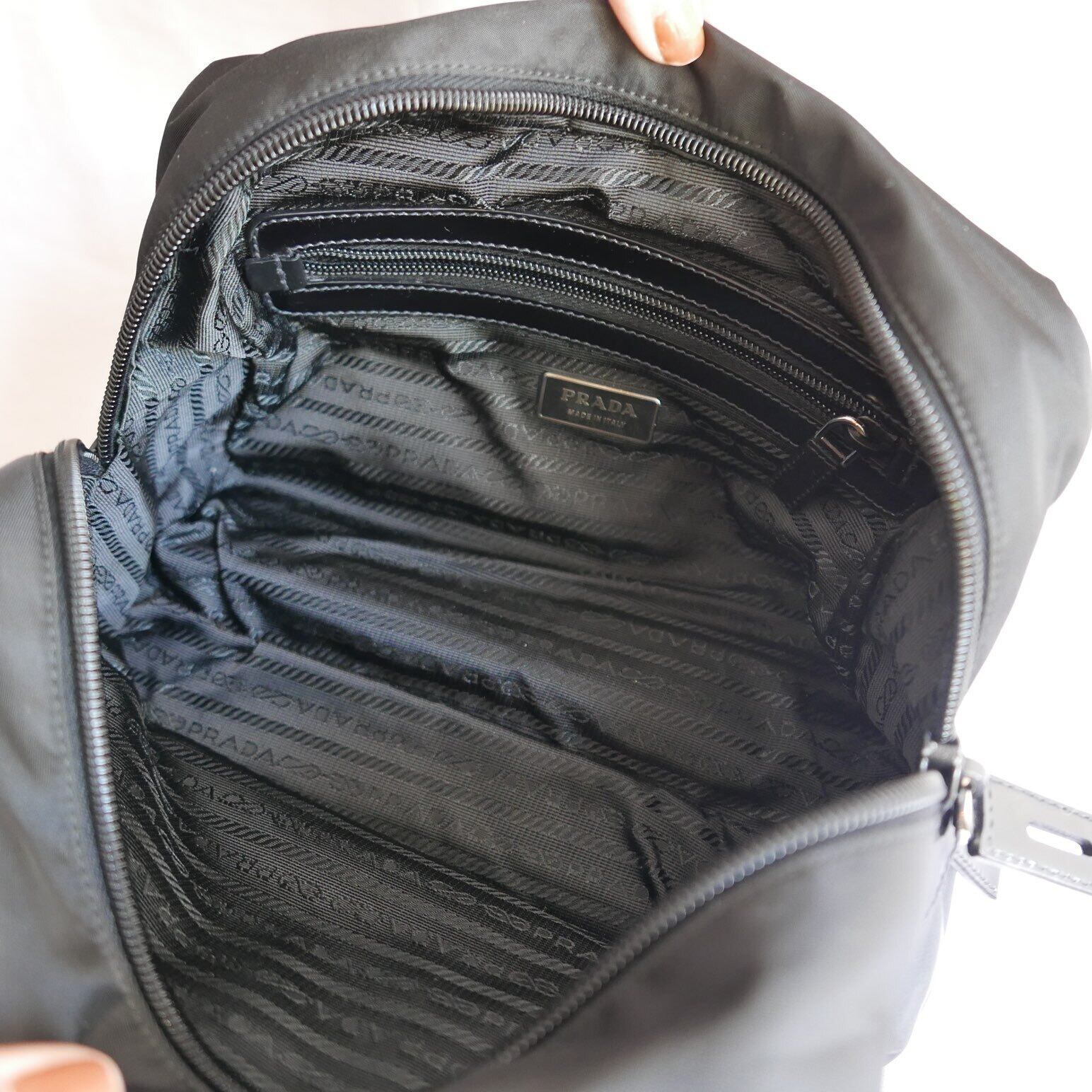 Black on BlackのエナメルPRADAロゴ装飾がモードな存在感!