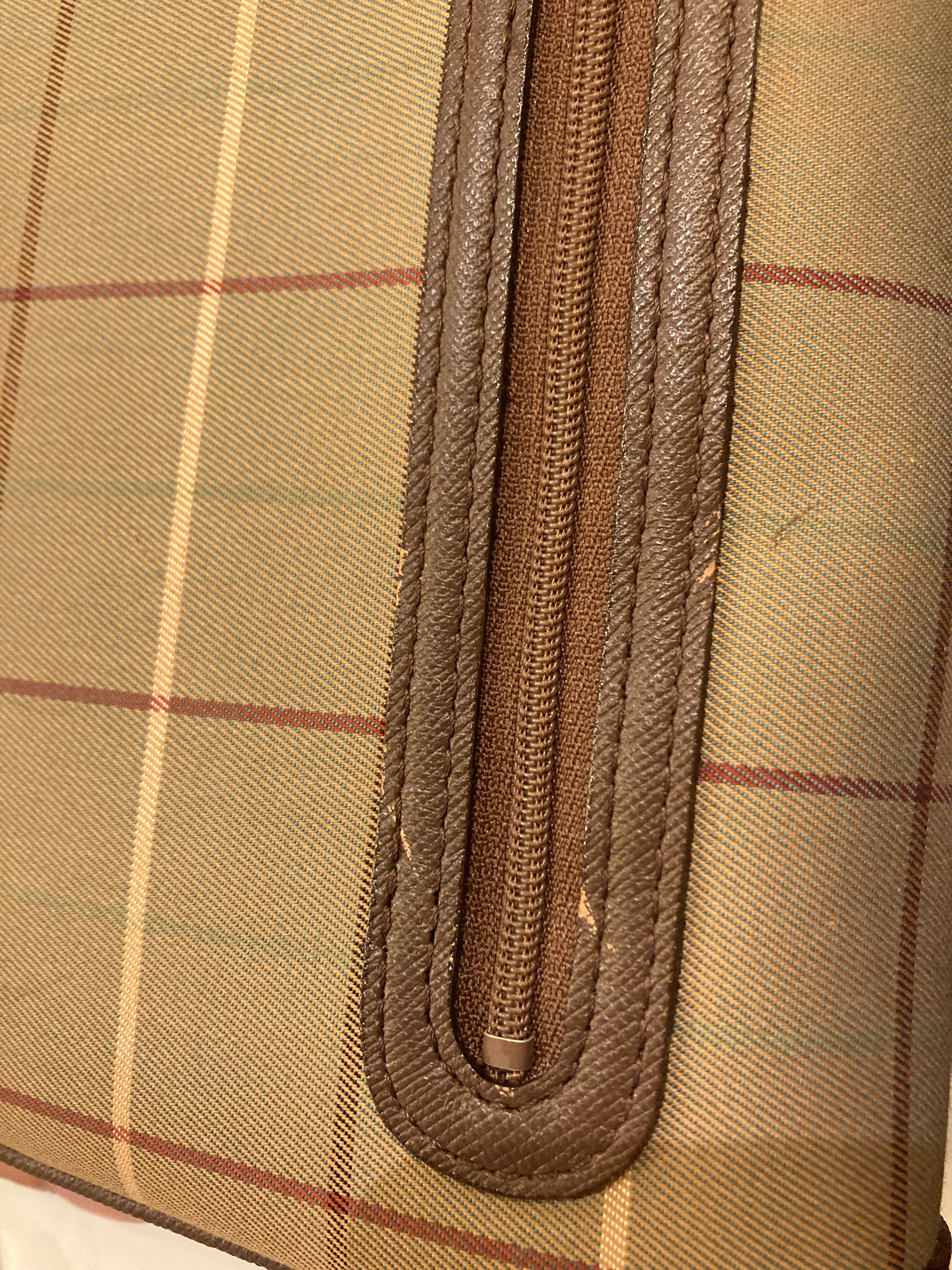 ややグリーンがかった落ち着いた色目のバーバリーチェック。