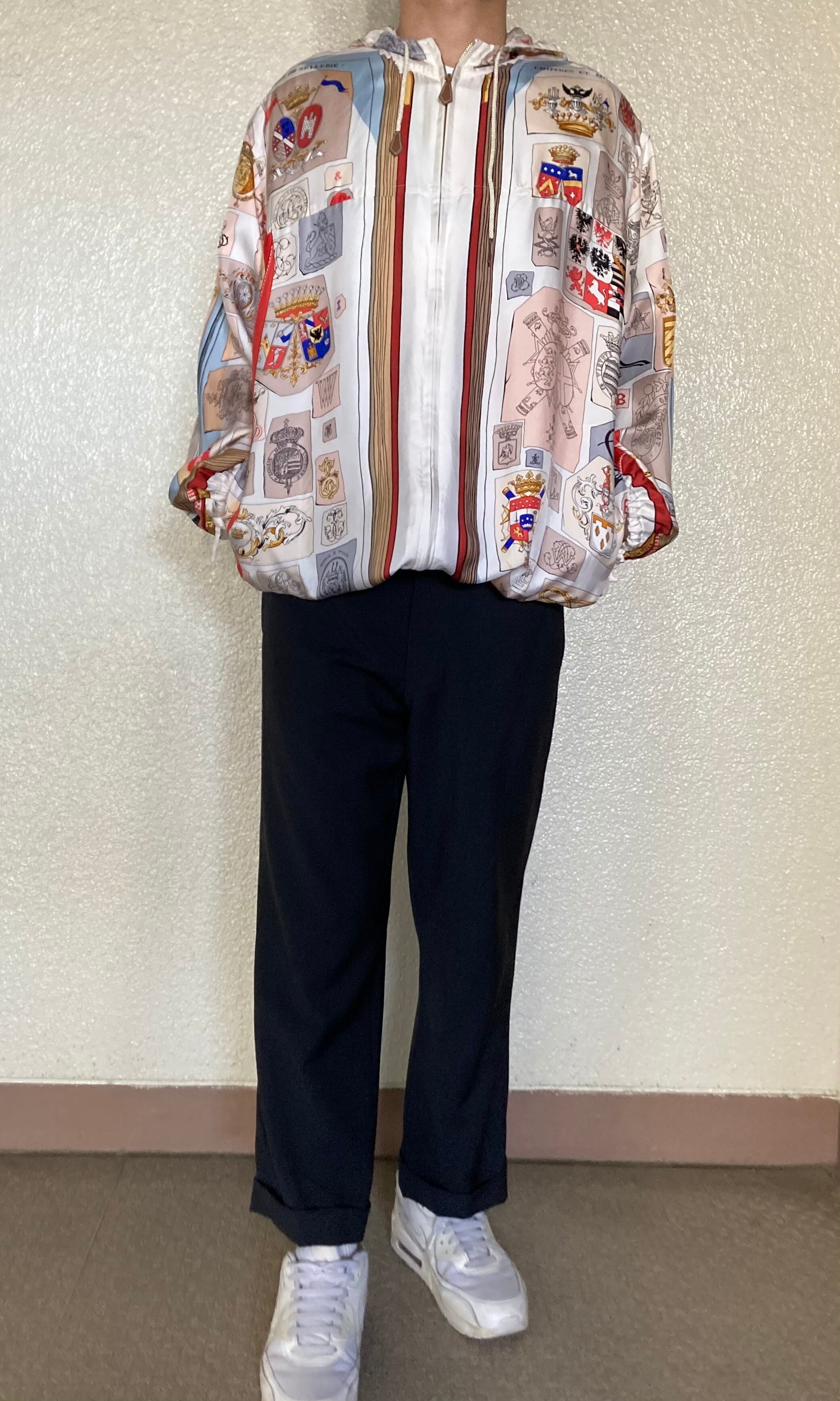 贅沢はSilkの光沢感に、ヨーロッパの地域の紋章などのデザインを集めた、洗練されたPOPなプリント。