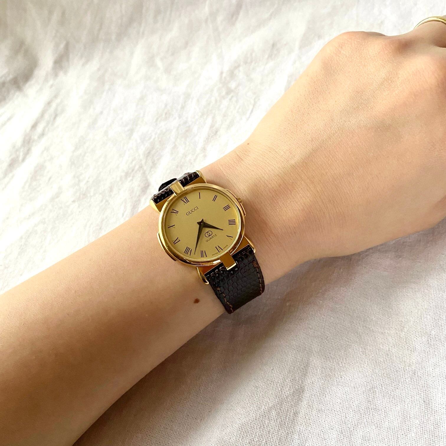 マットなゴールド色のフェイスでクラシックな上品さ。