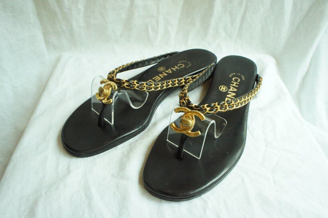 チェーンレザーのストラップにゴールドカラーのココマークがCHANELならでは一足!