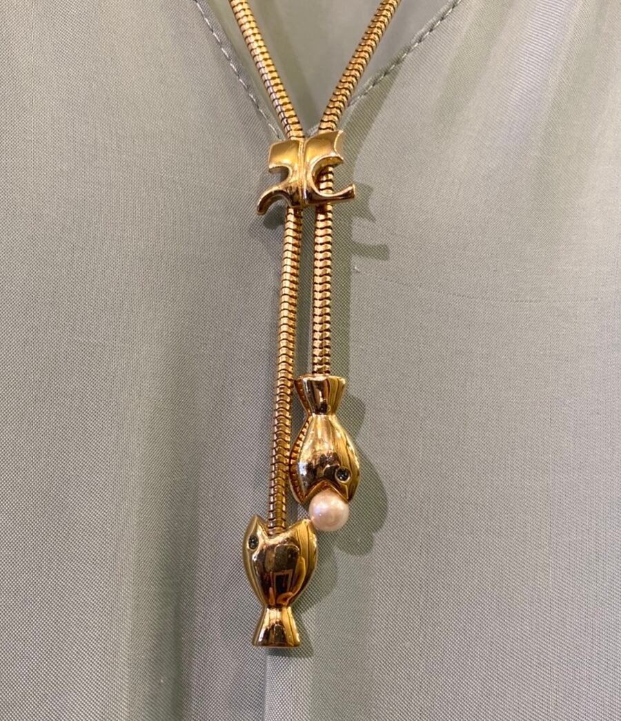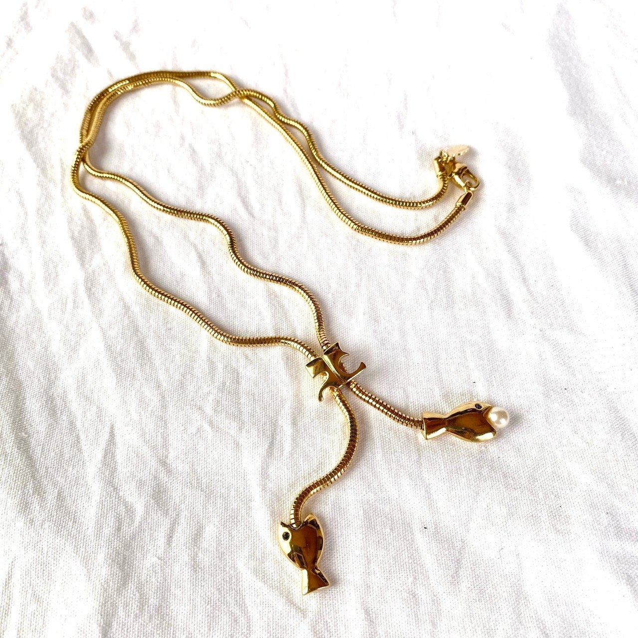 COURRÈGES Double Fish Motif Necklace-deadstock -