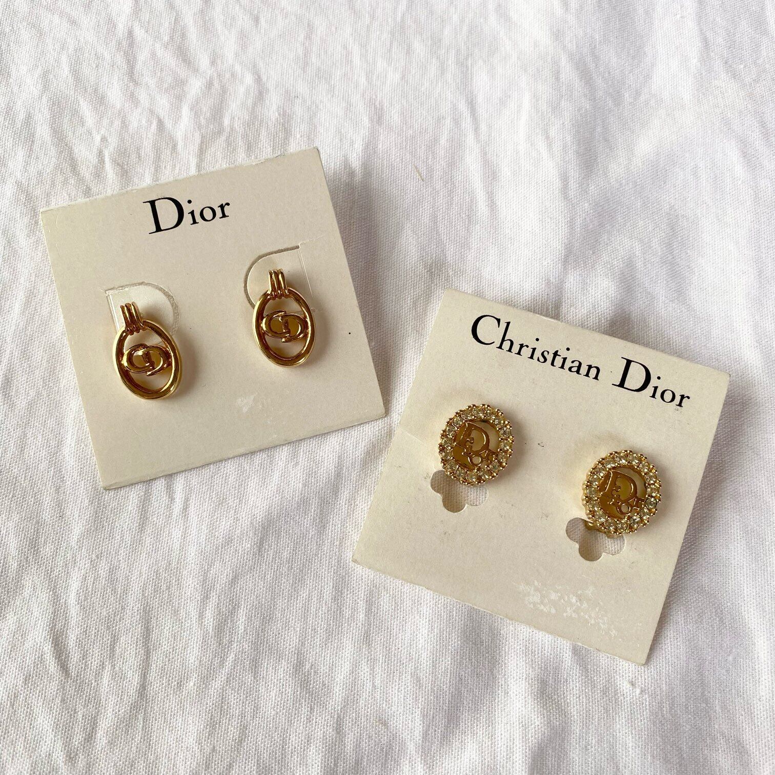 DIOR "Circle×Dior Logo" Rhinestone Earing