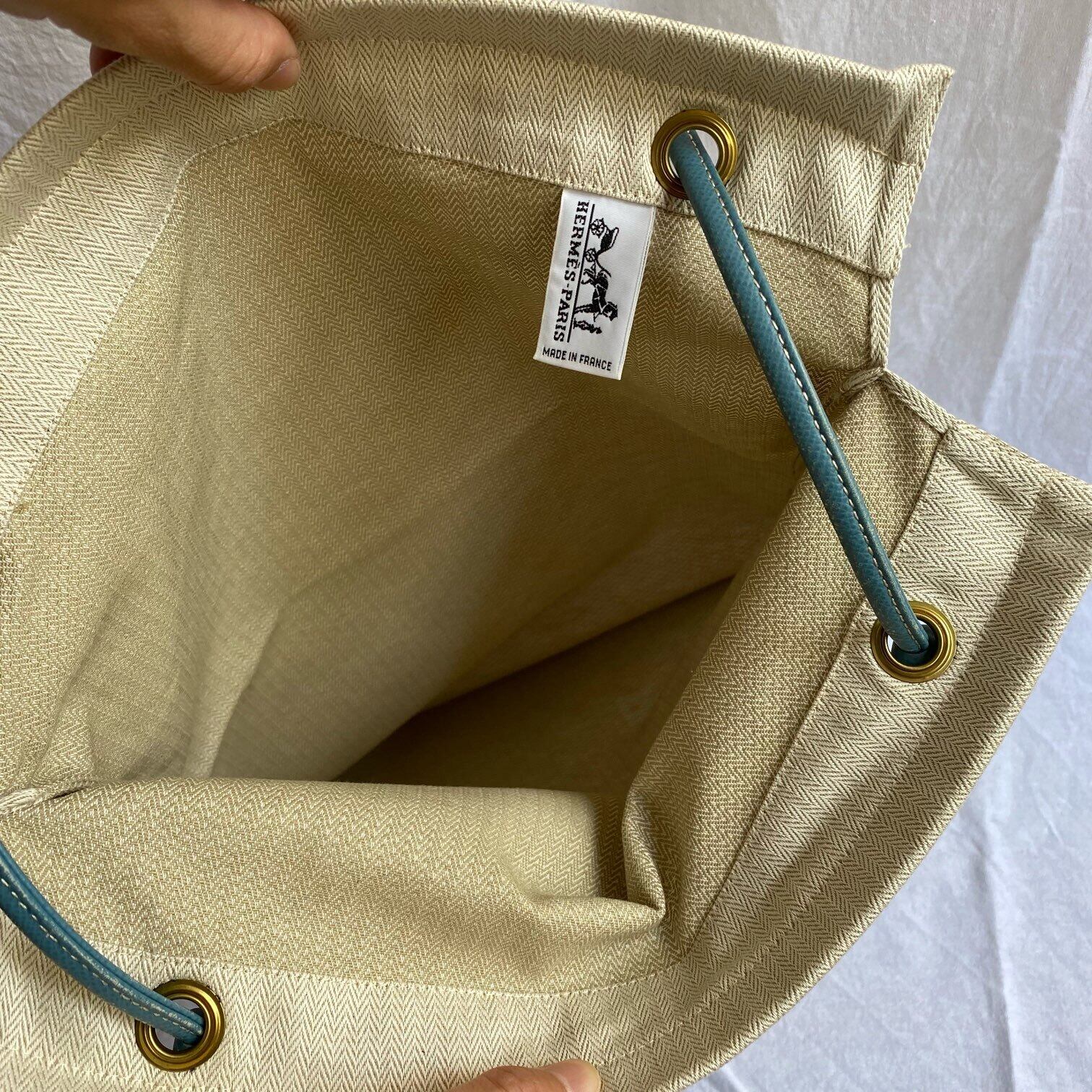 HERMES Cotton Tote Shoulder Bag -Light Blue Logo-